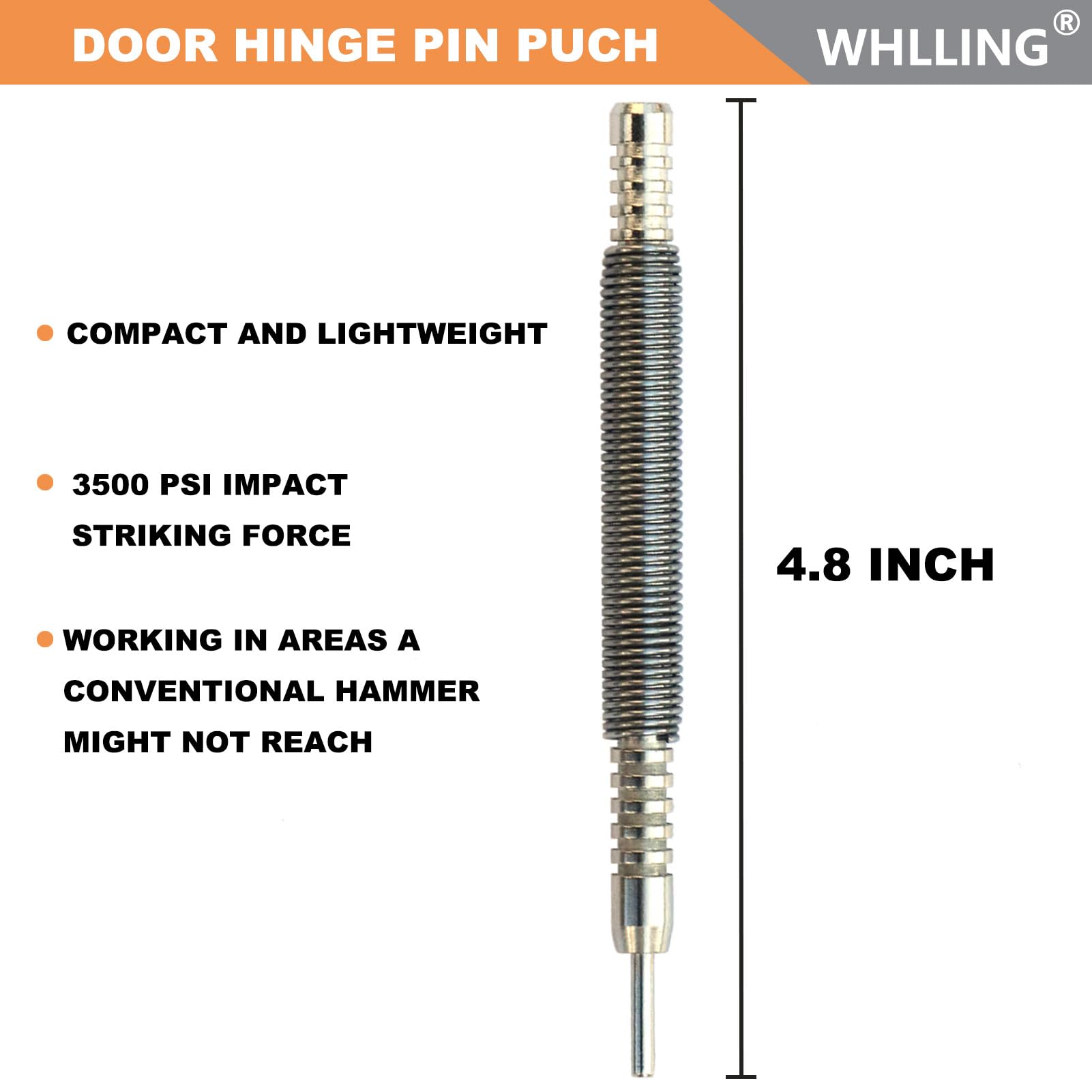 WHLLING Hammerless Door Pin Removal Tool, Spring Driven Door Hinge Pin Remover Tool, 3500 PSI Striking Hinge Pin Tool