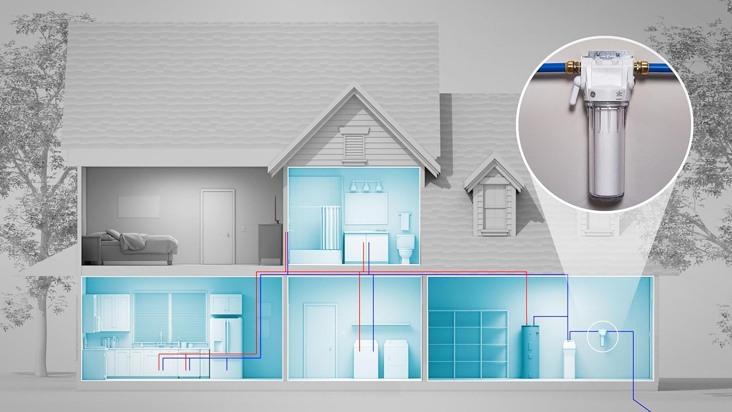 - Whole house filtration system, clear sump allows for easy viewing of filter
