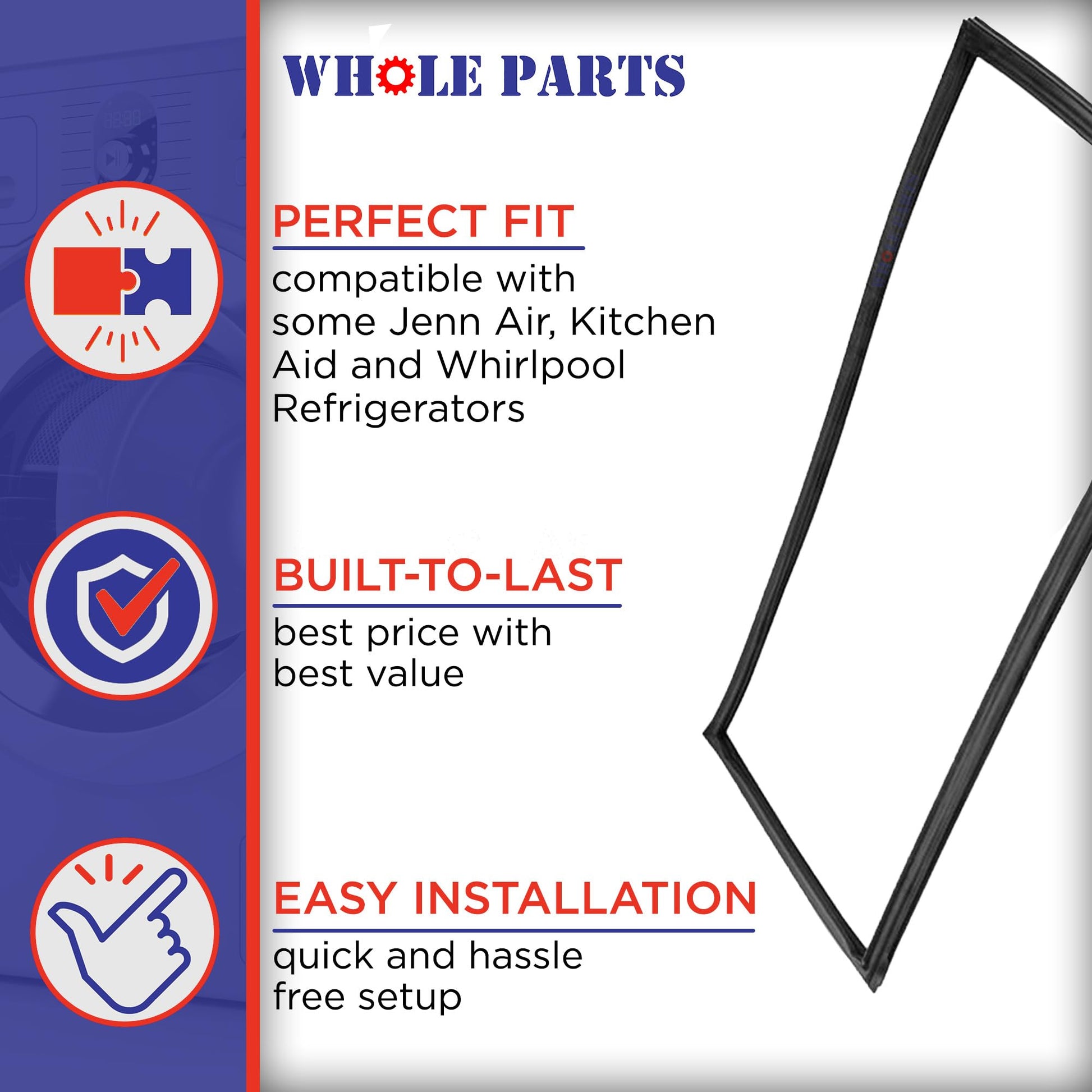 Whole Parts Refrigerator French Door Seal Gasket (Magnetic Strip Inside, Black), Single Piece, Part# W10830047 - Replacement & Compatible with Some Jenn Air, Kitchen Aid and Whirlpool Refrigerators
