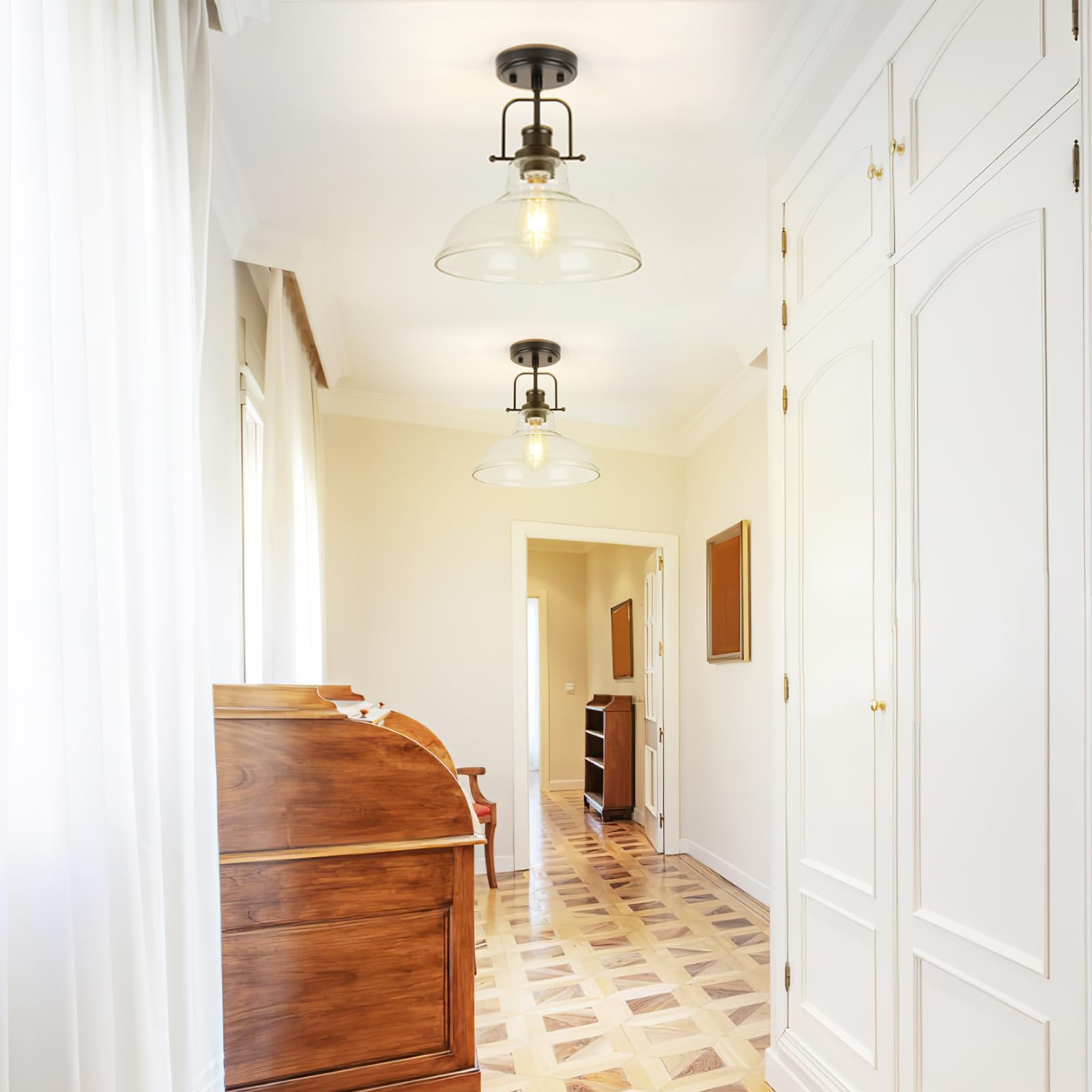 - 【Premium Material & Wide Application】Our industrial ceiling light fixture is made from premium metal and glass materials that ensure durability and longevity. The vintage ceiling light is ideal for living room, bedroom, kitchen, dining room, entryway, hallway, foyer, porch, entrance, laundry, corridor, stairwell, closet, balcony, kids room, bar, workshop, basement, warehouse, bar, cafe, office, hotels, restaurants, etc.