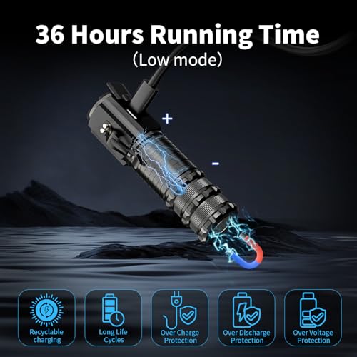 - ¡¼Reusable & Smart Rechargeable¡½The 2200mAh powerful pocket flashlight rechargeable battery is reusable and the smart display shows red for charging and green for full. Input: Type-c; Output: USB ( Recharger by any USB port). The lowest mode flashlight runs up to 36+ hours at full capacity.