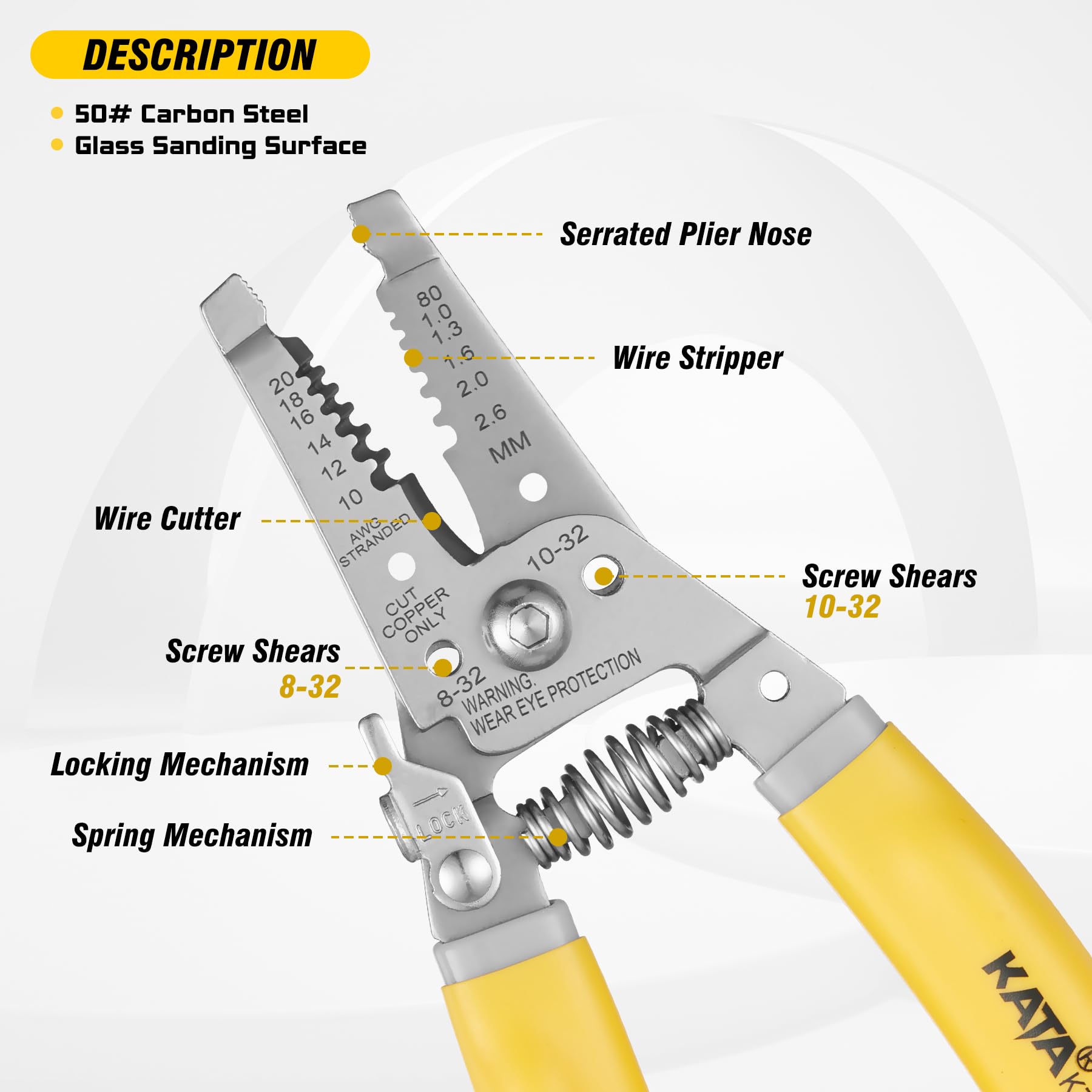 - Durable Material: 50# Heat treated carbon steel, glass sanding surface treatment, precision stripping molding, cutting edges sharp enough for repeated use and not easy to rust