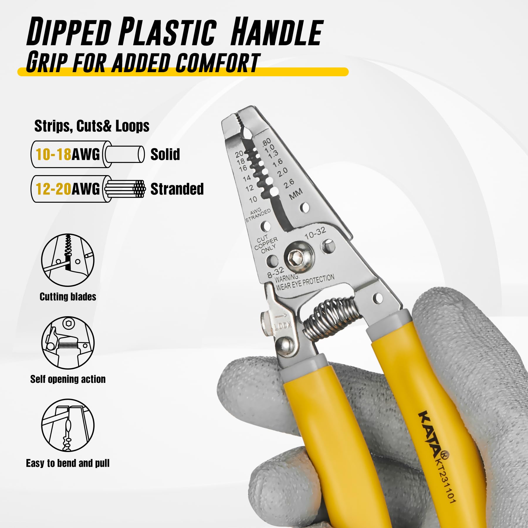 - Stripping Wire Capability: This wire stripper can strip wires of different materials cleanly without fraying, range 10-20 AWG, can cut strip and crimp 10-18 AWG (10/12/14/16/18) solid wire and 12-20 AWG (12/14/16/18/20) stranded wire
