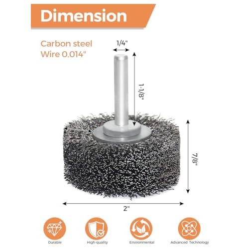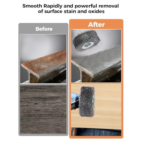 - Heavy-Duty 2in Wire Wheel: Crafted with 0.014" crimped carbon steel wire, aggressively removes rust, paint, corrosion, and weld spatter from metal, wood, stone, and more. 7/8¡± extra thickness covers wide areas, improve work efficiency, dense wires ensure deep cleaning without breakage.