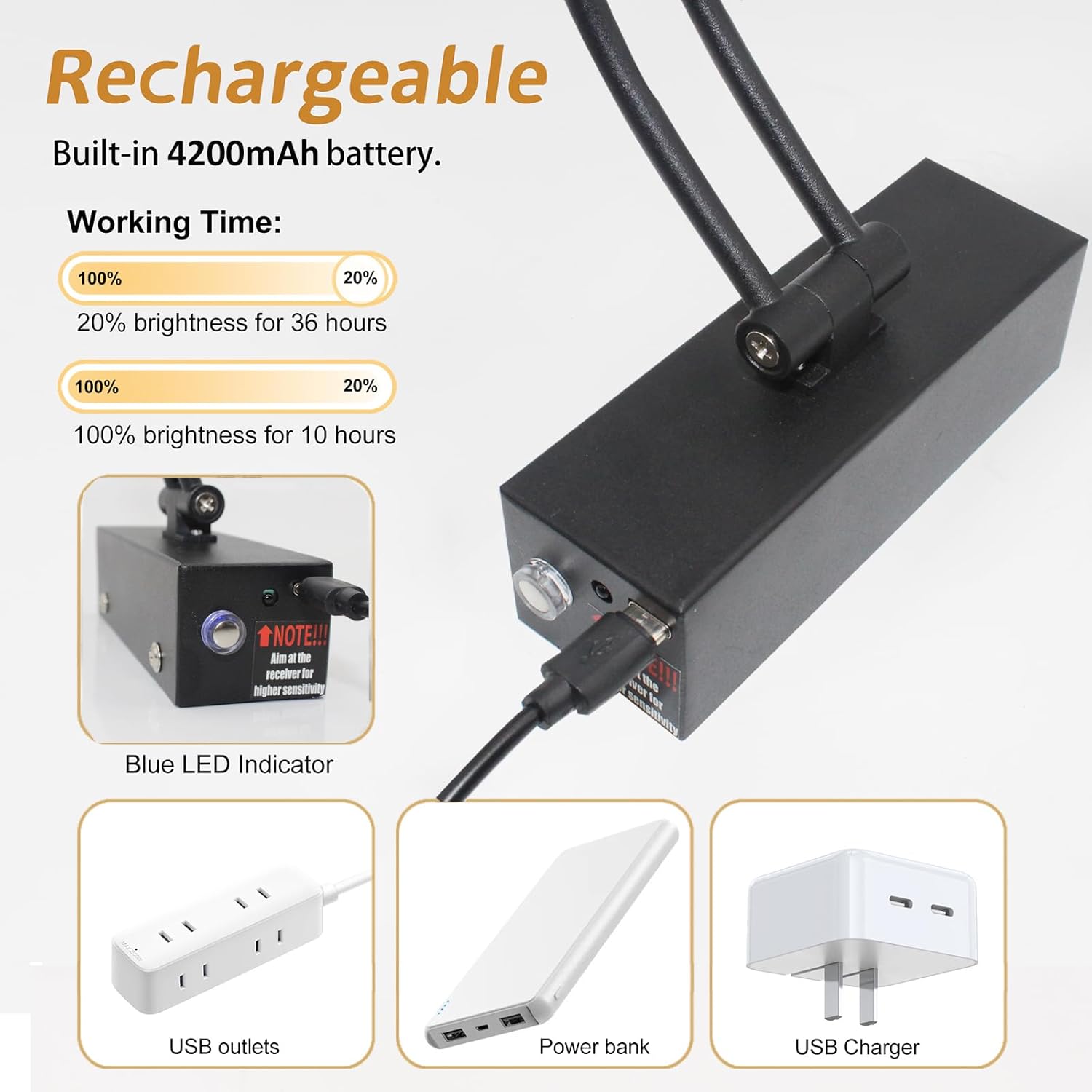 - Long Lasting Battery - The 5200mAh rechargeable battery included provides a long-lasting and reliable power source. The 16inch cordless art light is capable of using 100%-20% brightness for 10-36 hours when fully charged. Includes a 40in USB cable. With a working power of 3W , it generates almost no heat, ensuring that your artwork stays protected.