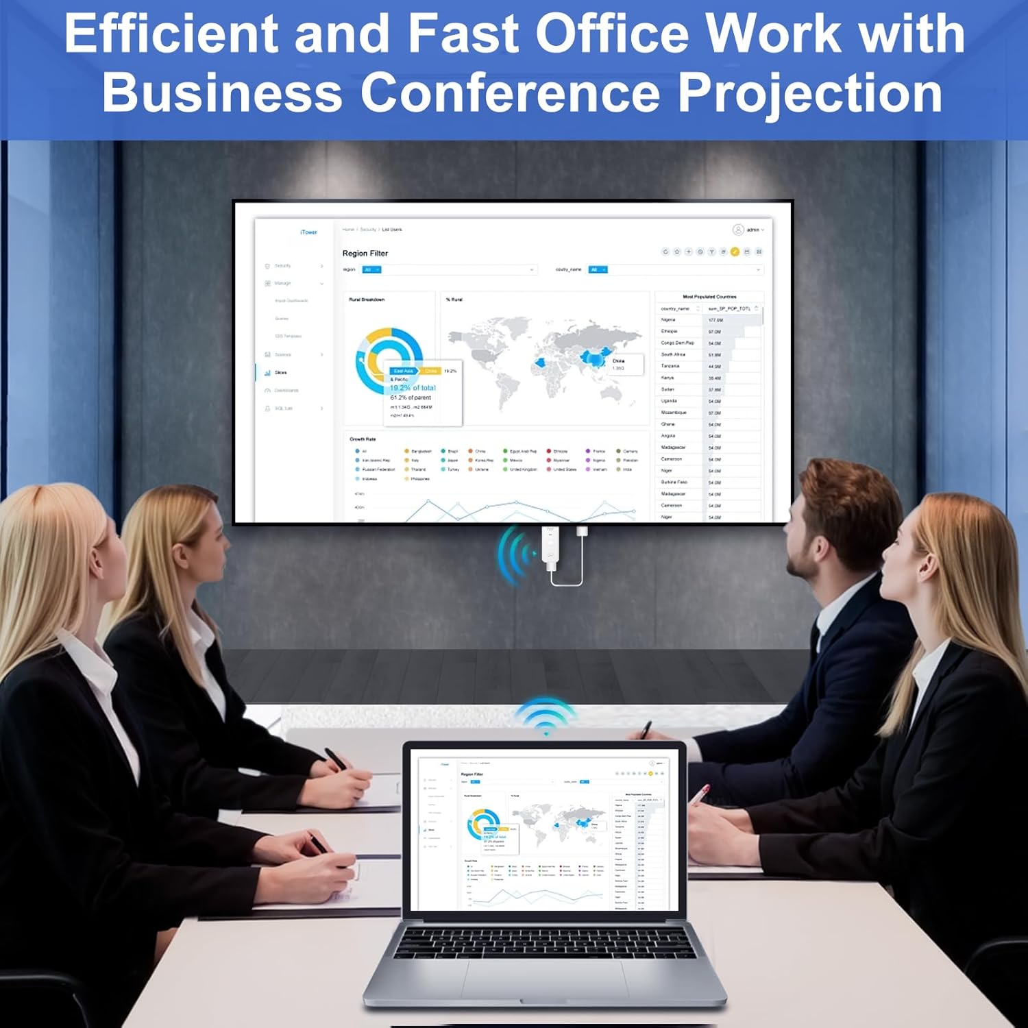 - Plug and Play, Hassle-Free Connectivity: The Wireless HDMI Receiver offers true plug-and-play functionality, simply plug the device into the display and turn on the casting function on your phone, tablet, computer, etc. No apps, Bluetooth or Wi-Fi are required, and it takes just seconds to connect your device for a smooth, cable-free experience. Ideal for home theater, business meetings and educational presentations