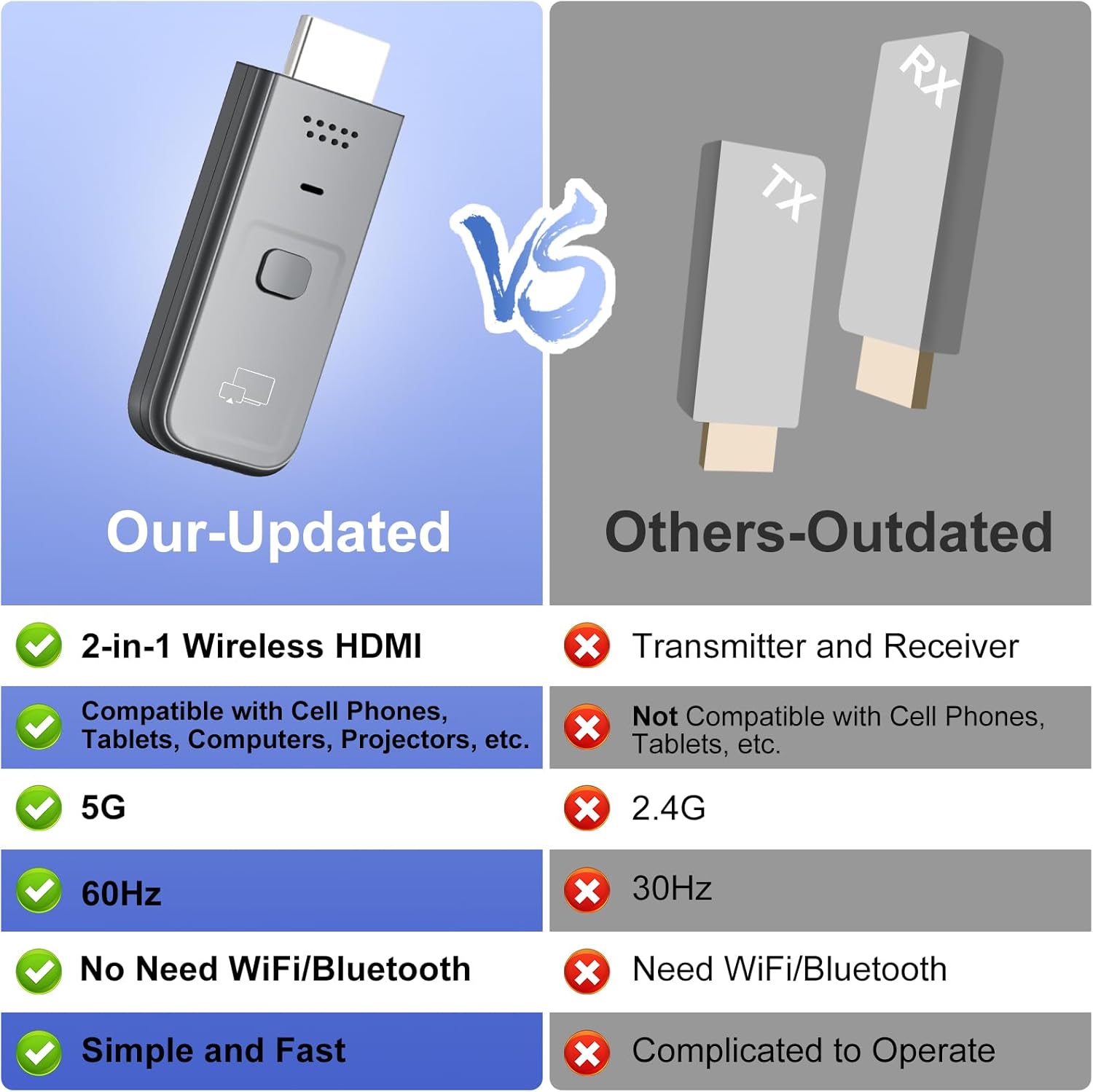 - Portable, Compact Design for Travel: Weighing only 0.1 lbs, this HDMI wireless display is compact and lightweight, making it easy to carry for on-the-go presentations, travel, and family gatherings,enjoy hassle-free wireless video streaming anywhere