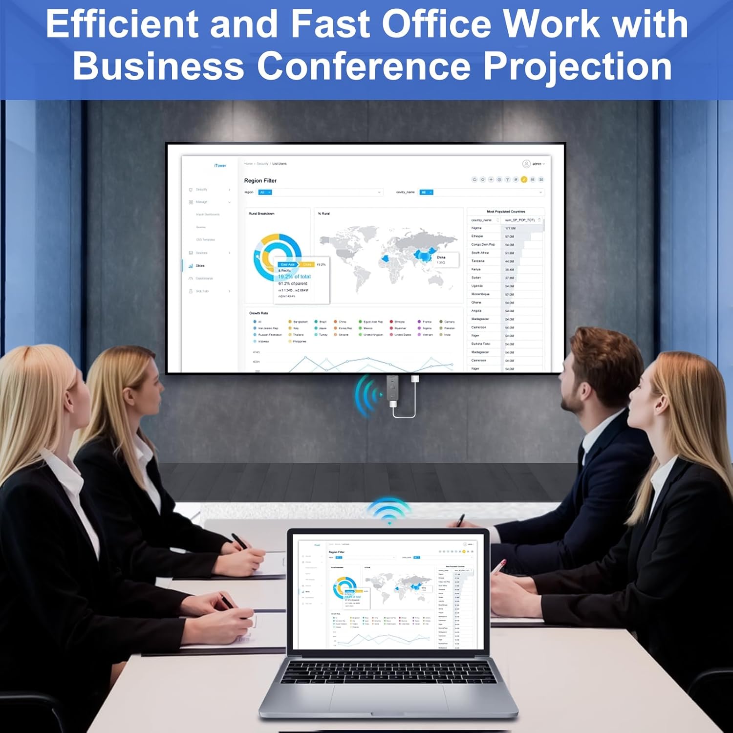 - Wide Compatibility for Multiple Devices: This versatile wireless HDMI adapter works with a variety of devices, enabling screen mirroring from smartphones, tablets, and laptops to displays, projectors, and more. Whether you’re projecting content for a business presentation, classroom teaching, or movies at home, it’s the ideal solution for all your HDMI needs