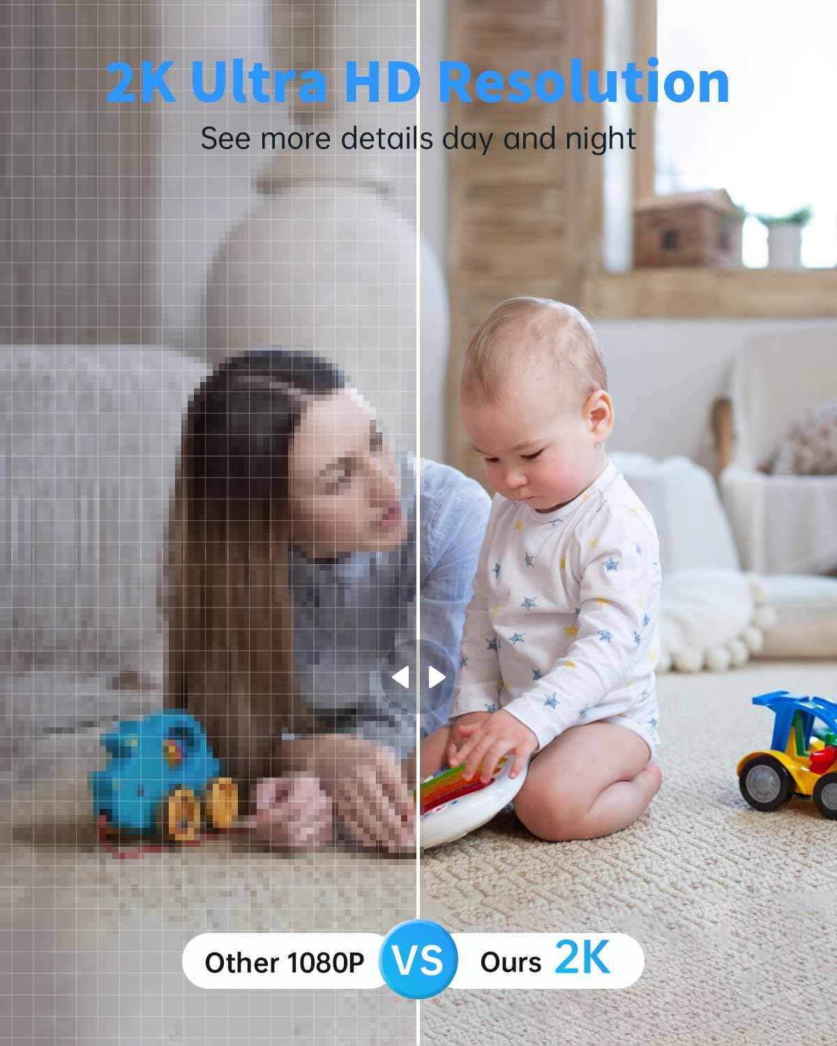 - 【2K High Resolution & Full Color Night Vision】The outdoor camera comes with 2K HD resolution, equipped with state-of-the-art color night vision technology and dual light source night vision. There are two options for full color night vision and infrared night vision. With 2 PIR led and 2 white lights, you can see amazing night vision even in dim light.