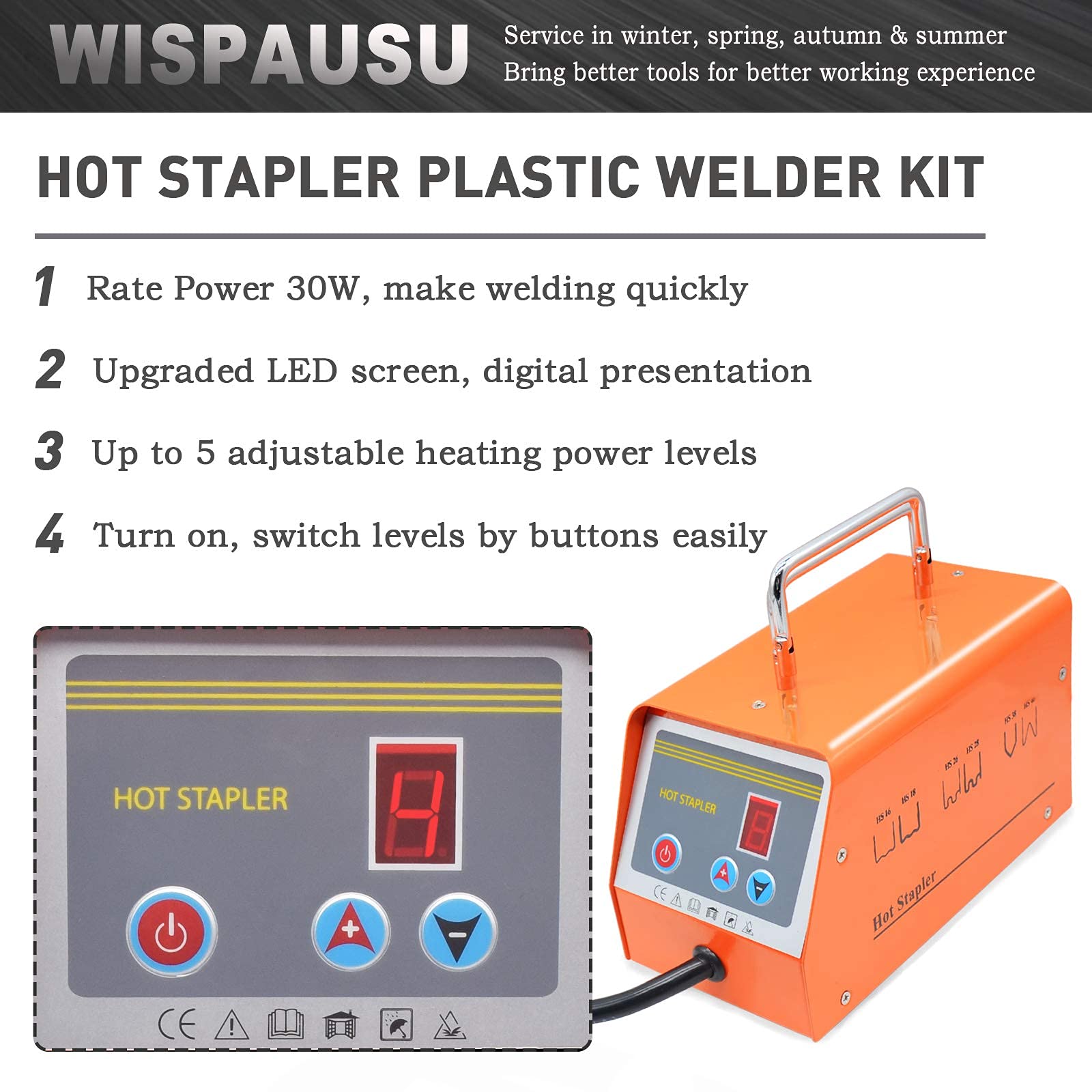 WISPAUSU Plastic Welding Kit with 800PCS Staples/5-Levels Power/LED Display Light, 110V Car Bumper Hot Stapler Gun Plastic Welder Machine