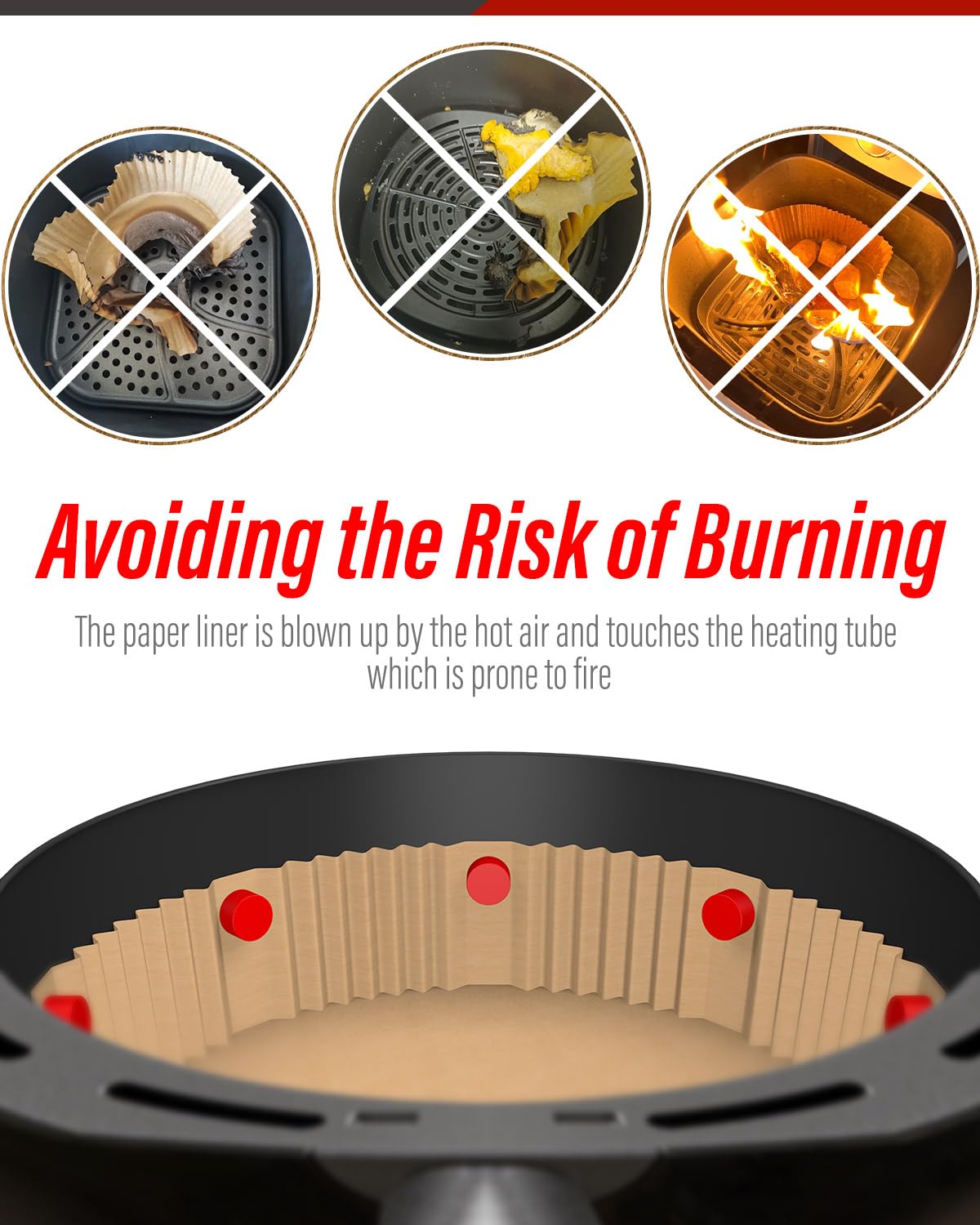 - STOP FIRE HAZARDS & FLYING LINERS: Securely anchors parchment paper liners in place, preventing them from blowing up onto heating elements and causing a fire risk or covering your food. Cook with confidence and safety