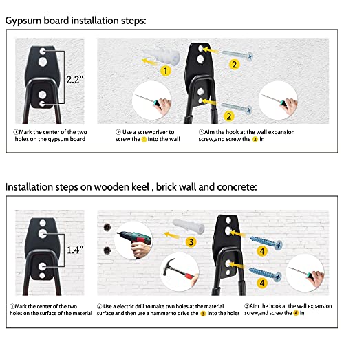 - Universal Installation: Whether it's wooden walls, drywall, or concrete, our wall hanger hooks come with 2 sets of screws that fit various wall types, allowing you to start your wall-mounted storage journey immediately without needing professional installation