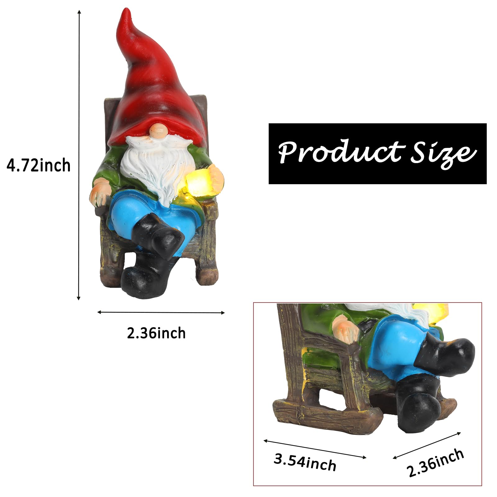 - 【Adorable Figurines】This solar garden gnome statue features a rocking chair, when you press one end with your hand, the statue will wobble on its own until it balances again. A perfect outdoor indoor decor gift are sure to add charm and whimsy to your yard or outdoor garden.