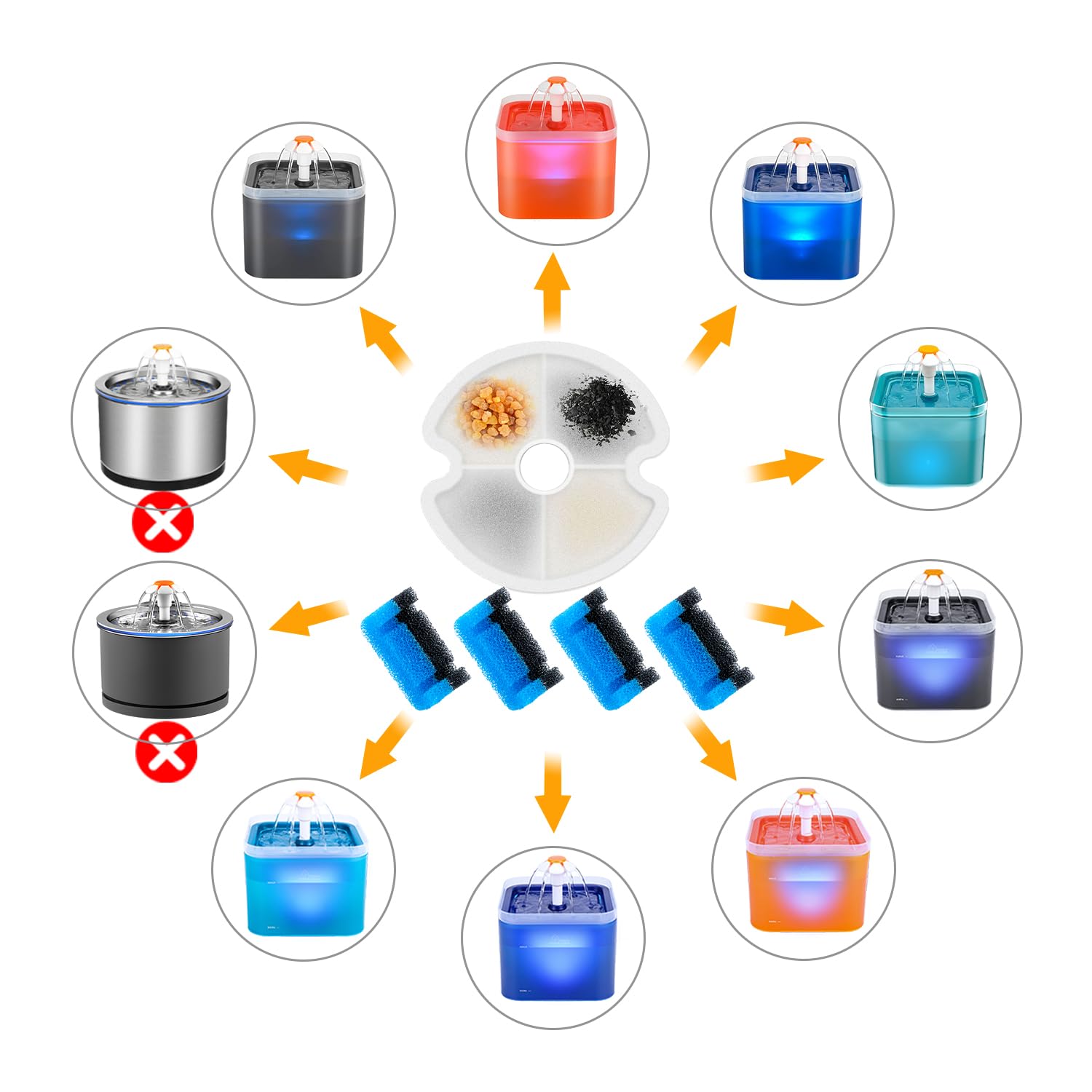 Wonder Creature Cat Water Fountain Filter Replacement, 4/8/12/4+4/8+8 Filters Pack for 2L/67oz Automatic Cat Fountain (4+4)