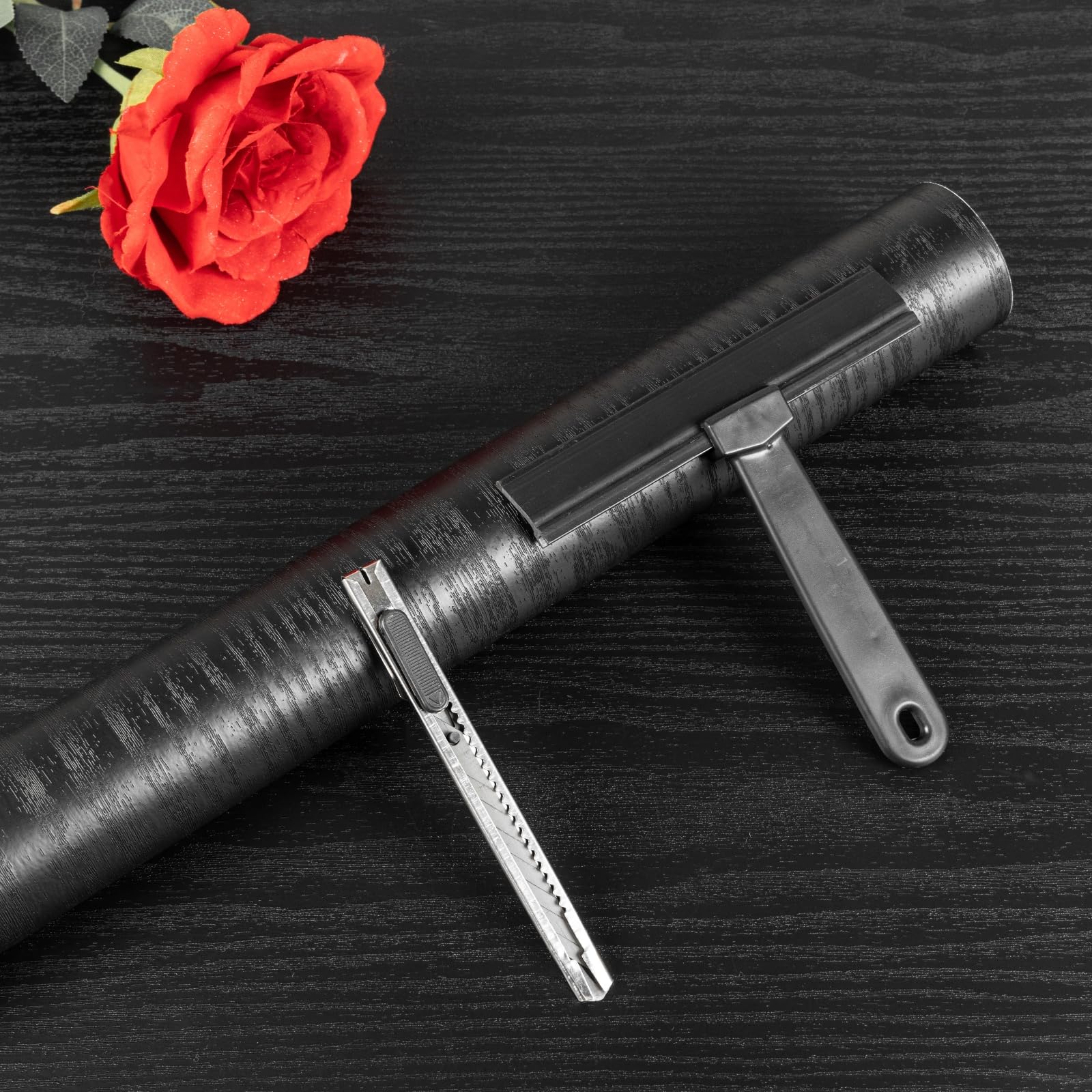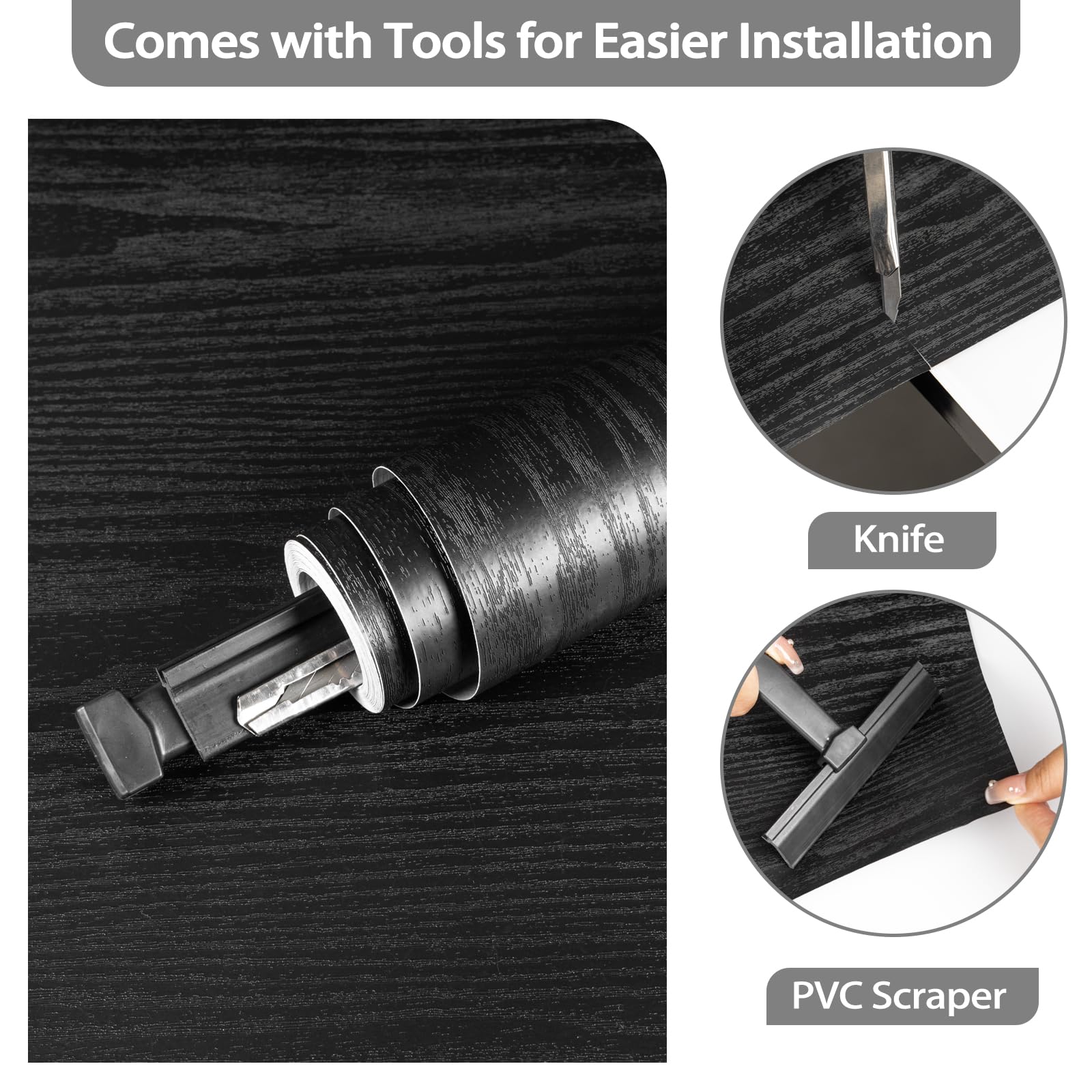 Wood Contact Paper With Tools, Black Peel and Stick Wallpaper Thickened No Tearing Vinyl Wrap, Self Adhesive Faux Wood Grain Wallpaper Cover Cabinets Countertop Wall Furniture Decoration 17.7" X 78.7"