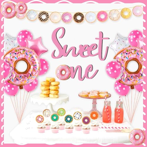 Wooden Sweet One Birthday Sign Decals for Backdrop Baby Girls First Birthday Decorations Donut Birthday Party Supplies for 1 Year Old Girl Sweet First Birthday Party Sign Banner Baby Girls Photo Props
