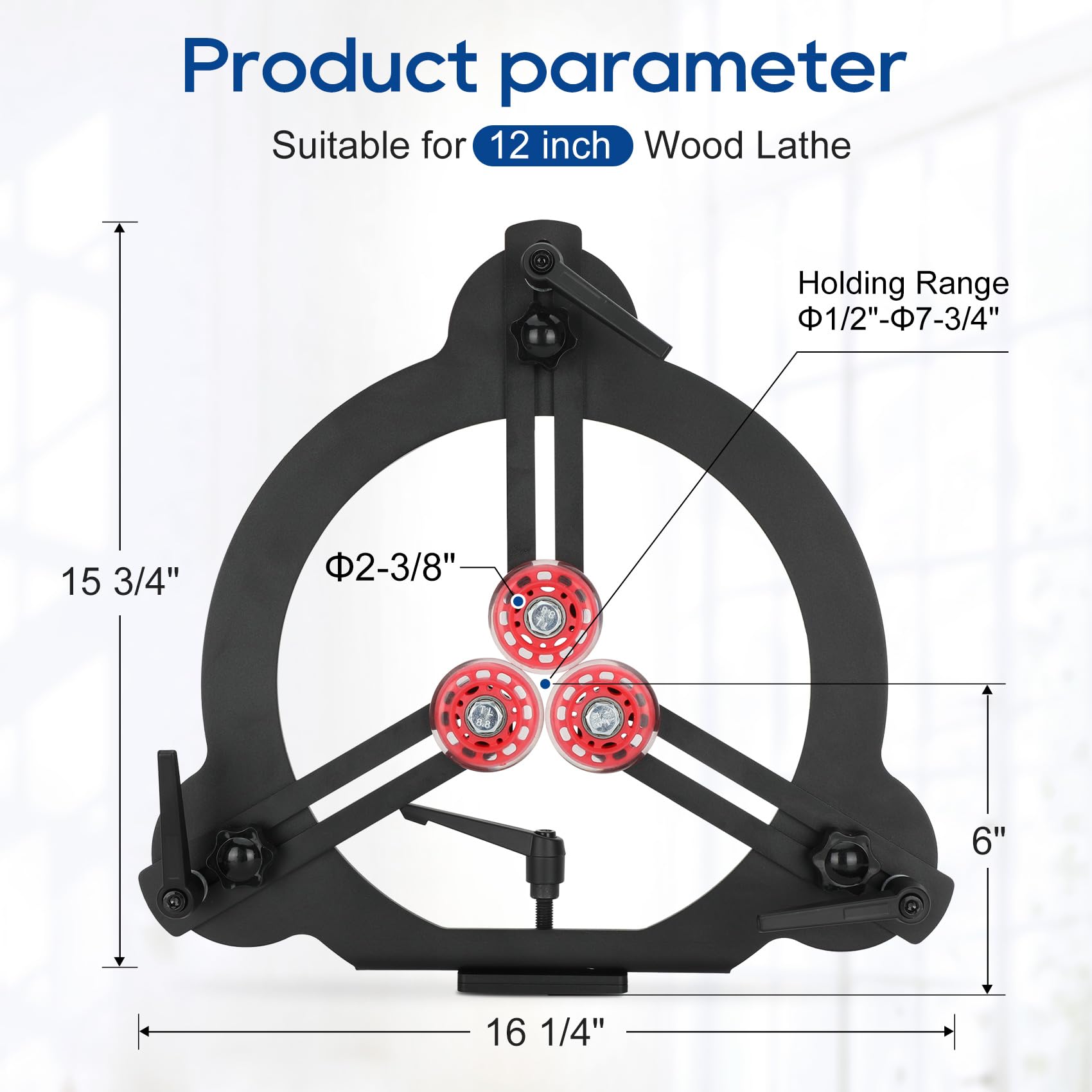 - Versatile Compatibility: This woodworking steady rest is specifically designed for 12 inch swing medium size lathes, making it a perfect fit for a wide range of woodworking projects. It offers adjustable features to accommodate various workpiece sizes, enhancing its versatility. Widely suitable for any turning diameter from 1/2 inch to 5.9 inch.