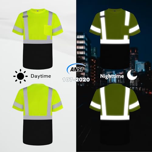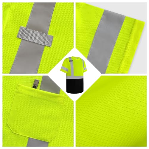 Work Shirts for Men Construction Class 3 High Visibility Shirts for Men, Hi Vis Reflective Safety T-Shirts for Men Women, Short Sleeve Work Shirts with Black Bottom, Yellow XL, 3PCS