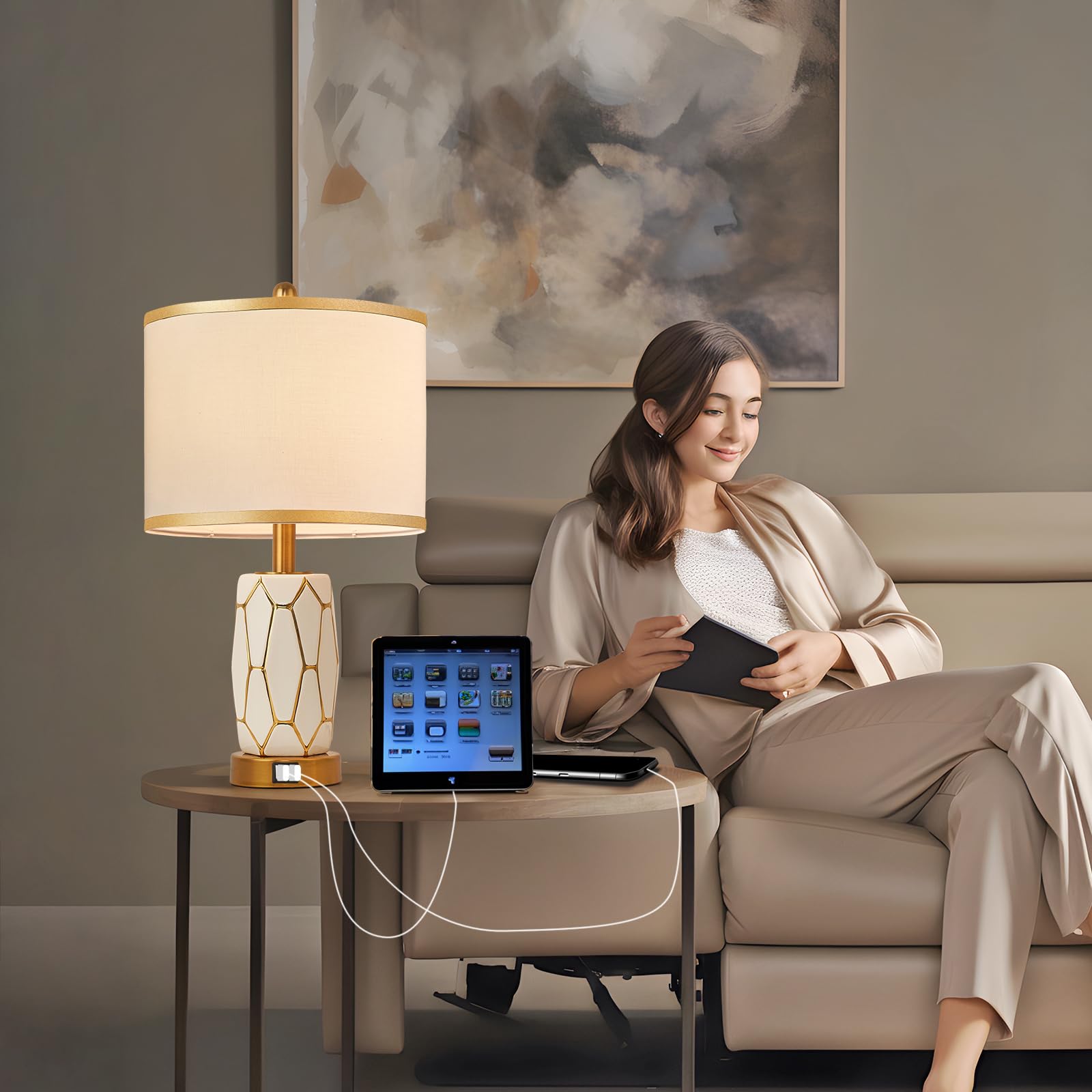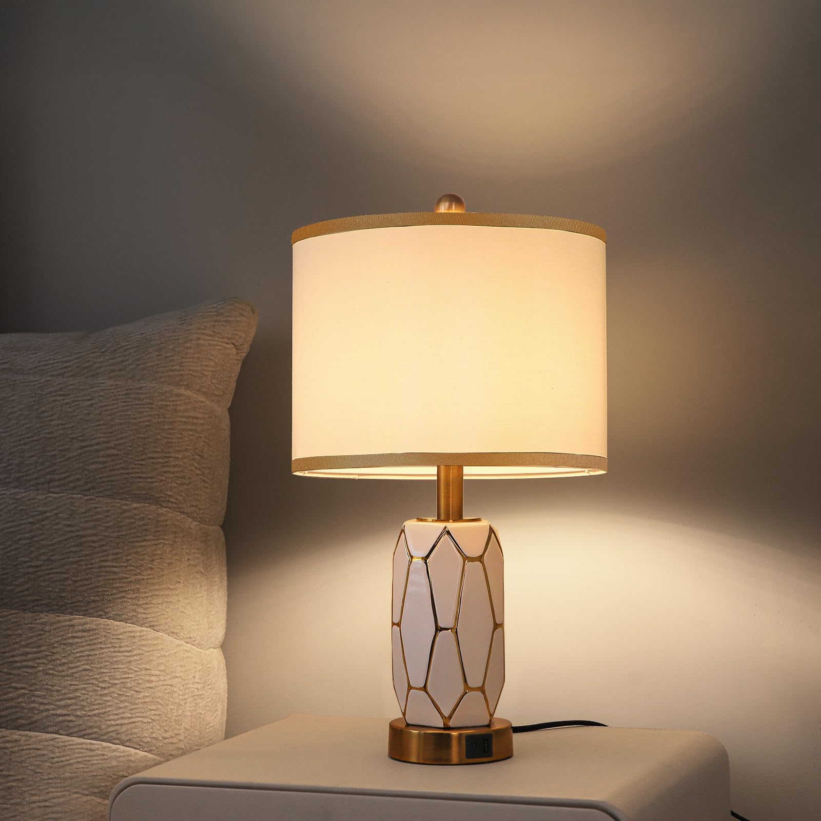 - 3-Way Dimmable Touch Control Design:The metal base of the lamp body has a built-in sensitive sensor, you can click any part of the base metal to adjust the 3-level brightness and turn it on/off. he base of the table lamp is a gold-plated metal finish base,which makes the product high-end, strong, stable and safe. The ceramic part adopts the rare porcelain clay high-temperature firing process, and the surface is smooth and clean.