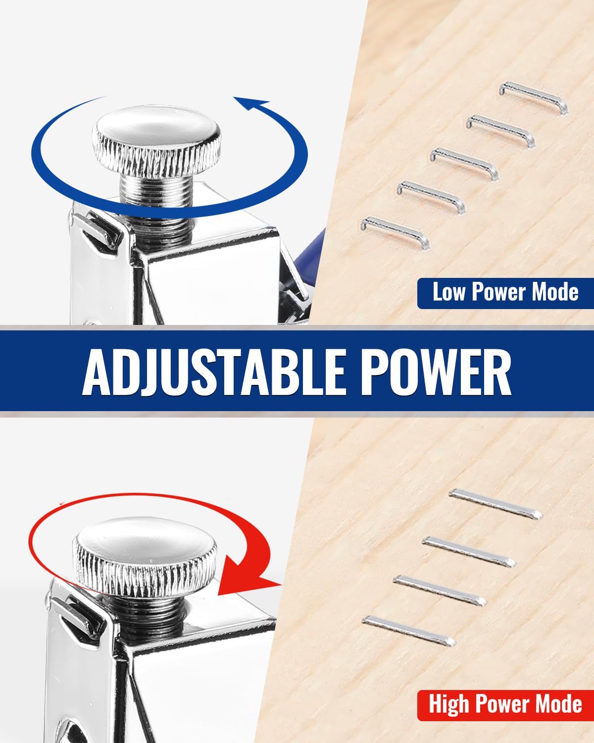 - Two Different Strengths: The staple gun offers dual power settings with high/low power rods, allowing you to handle both hard and soft materials