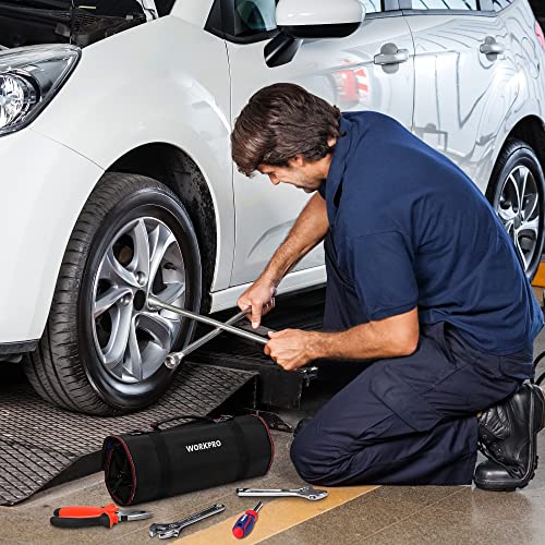 WORKPRO Roll Up Tool Bag, Tool Roll Up Bag with Detachable Tool Pouches, Heavy Duty Tool Bag Organizer with 6 Pockets, Tool Organizer for Mechanic, Electrician, Plumber and Carpenter