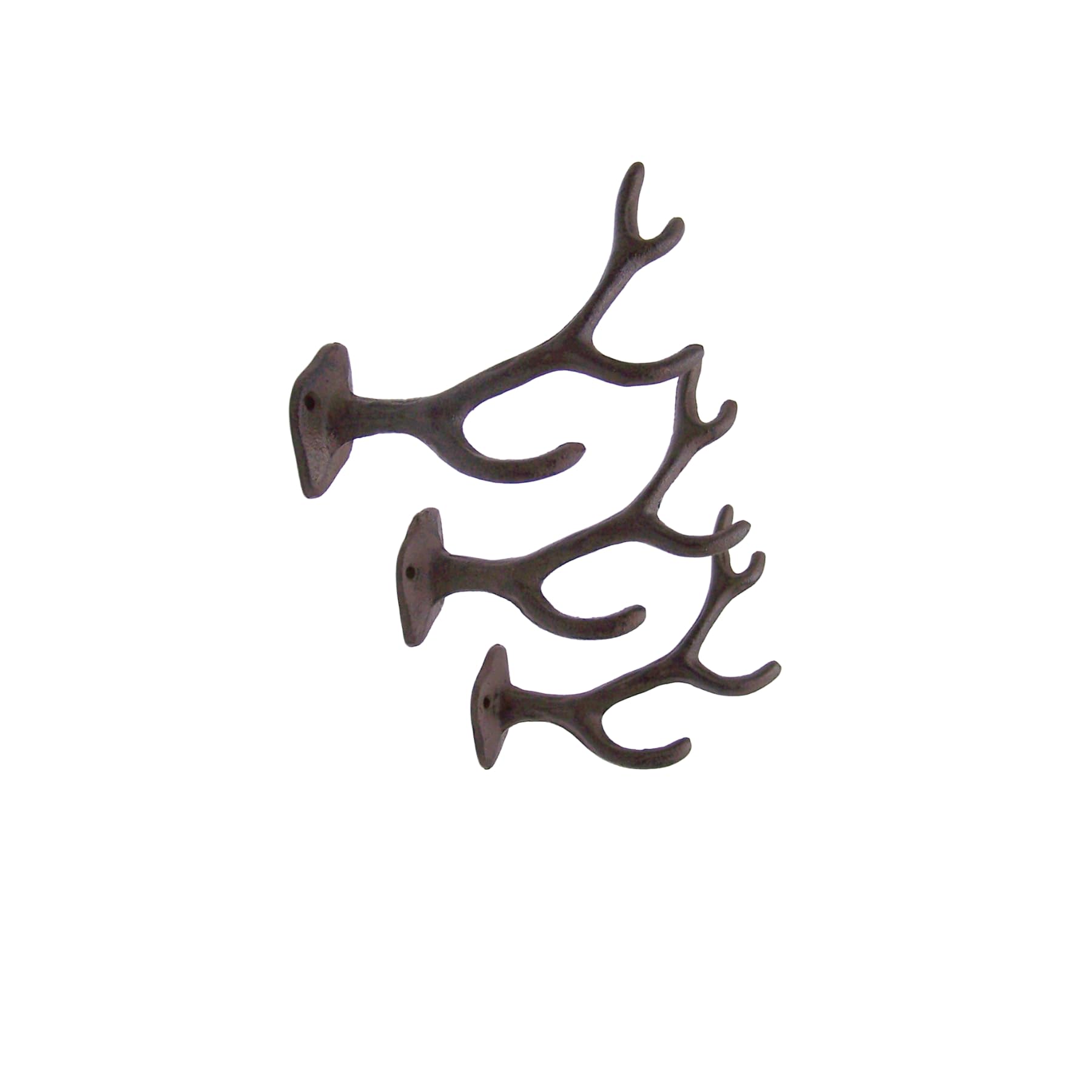 Details: Set of 3 Wall Hooks Featuring Detailed Antlers to Hang Towels, Coats, Purses and More! Material: Cast Iron Size: 5.5"L x 1.5"W x 6"H Includes 2 Holes to Make for Easy Mounting (Mounting Hardware Not Included) Perfect Accent to Compliment Rustic Decor While Being Practical for Organization