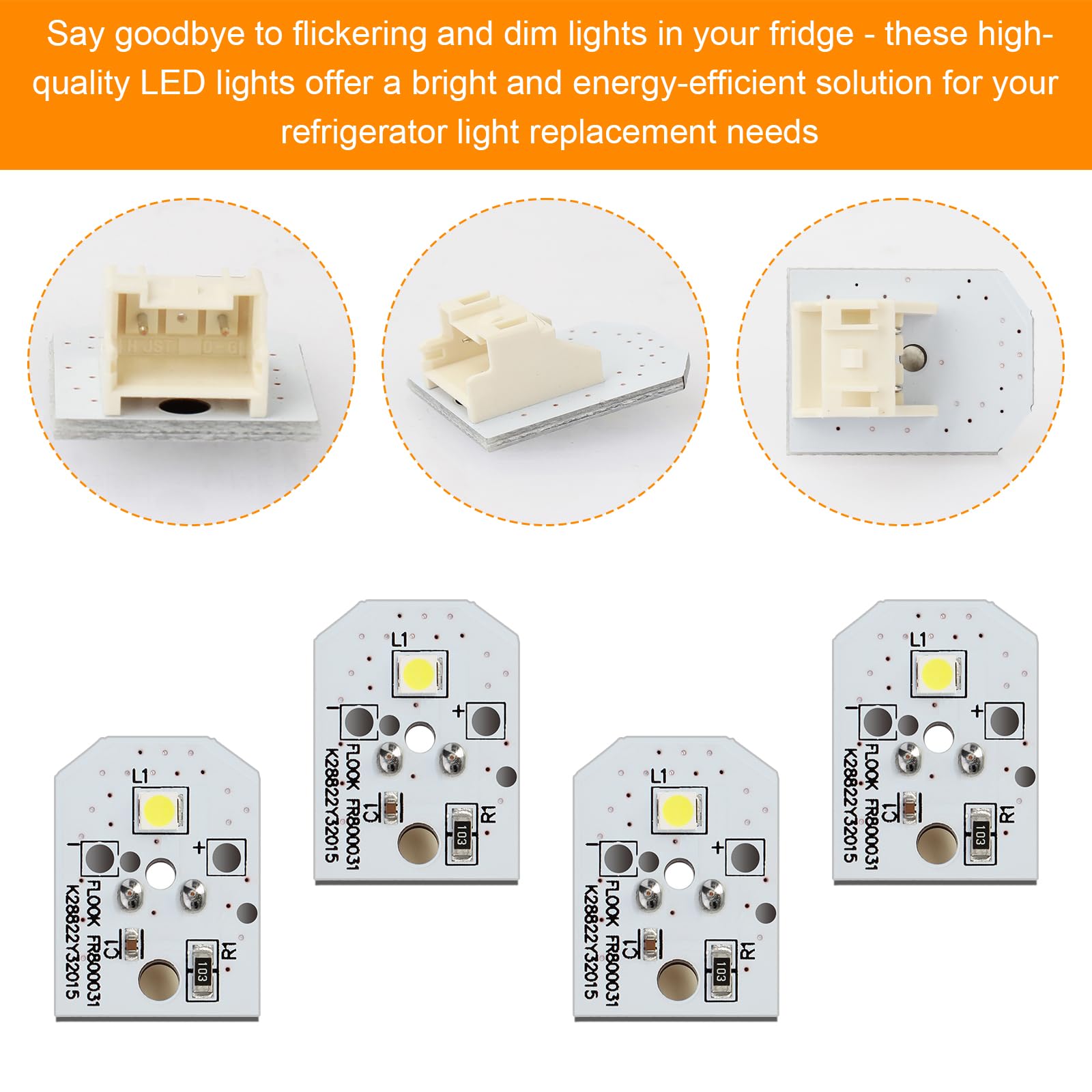 WR55X11132 Refrigerator LED Light for GE Refrigerator LED Light Assembly Replacement WR55X25754 3033142 AP5646375 PS4704284, No-Include Plastic Cover, Waterproof (4 Pack)