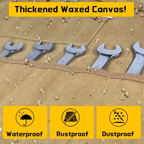 - ¡¼Waxed Canvas Wrench Roll Up Bag¡½The Wrench Roll can be used to store metric wrenches, SAE wrenches, Allen wrench, ratchets, adjustable wrench, screwdrivers, small tools, nuts and bolts, sockets and other tools in a durable and protective way, making it ideal for storing your most valuable tools (No tools included)