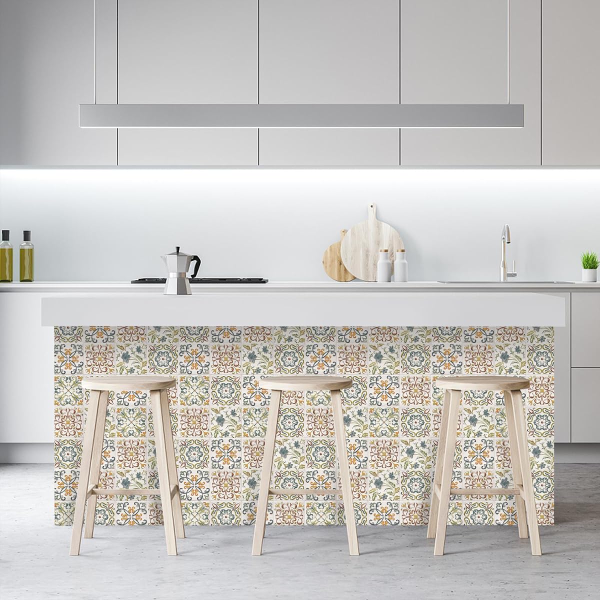 Wudnaye Bohemian Wallpaper Peel and Stick Faux Tile Contact Paper 17”×118” Tile Pattern Removable Self Adhesive Wallpaper for Backsplash Waterproof Contact Paper for Kitchen Cabinets Vinyl Decorative