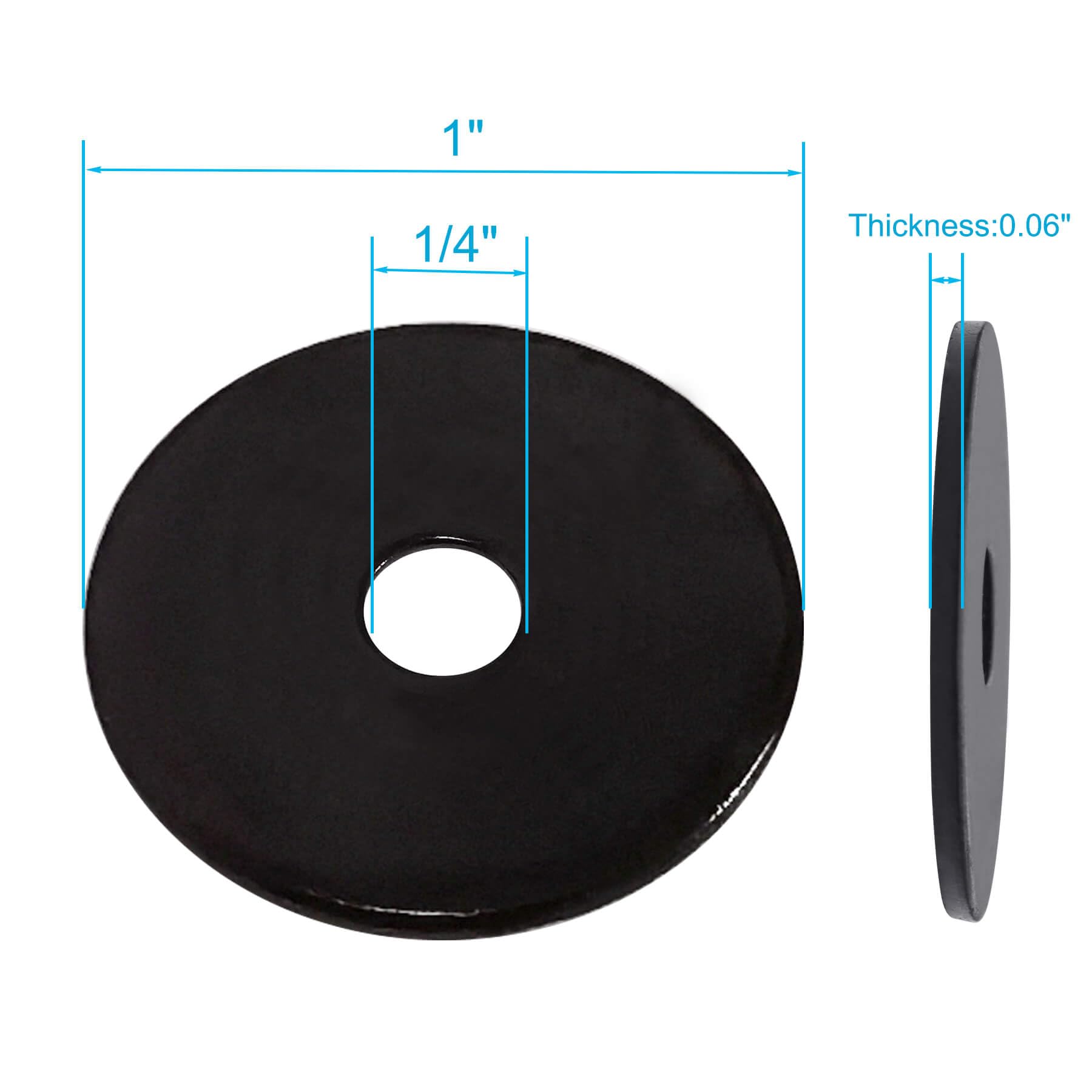 - Specification: Inside diameter: 1/4 inch, Outside Diameter: 1 inch, Thickness: 0.06 inch, Fits 1/4" bolts & fasteners.