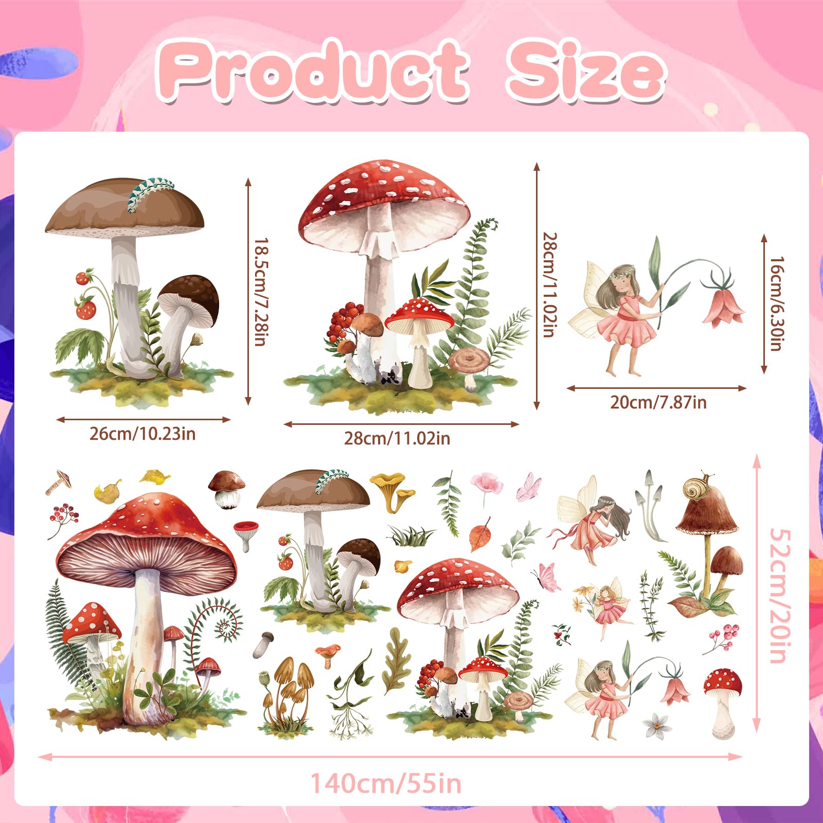- Wide Application: This wall mural can be used to decorate your child's bedroom, living room, playroom, nursery, classroom, entrance hallways, closet doors, glass windows and any other place you want to decorate. Mushroom wall mural is ideal for home decoration