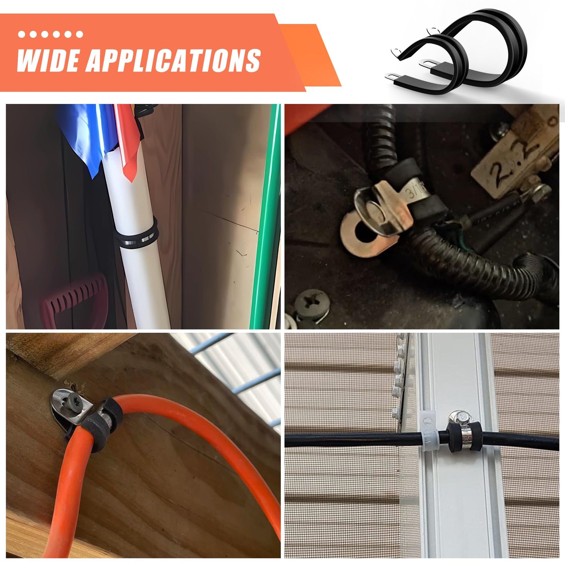 - Widely Used- The marine grade rubber p clamp is perfect to apply in automotive, industrial, boat/marine, windshield, household etc. for wiring, cables, pipe, rack, line management and restoration. No matter in salt water/air environment. These clamps can be recycled and reused, can be used for a long time.