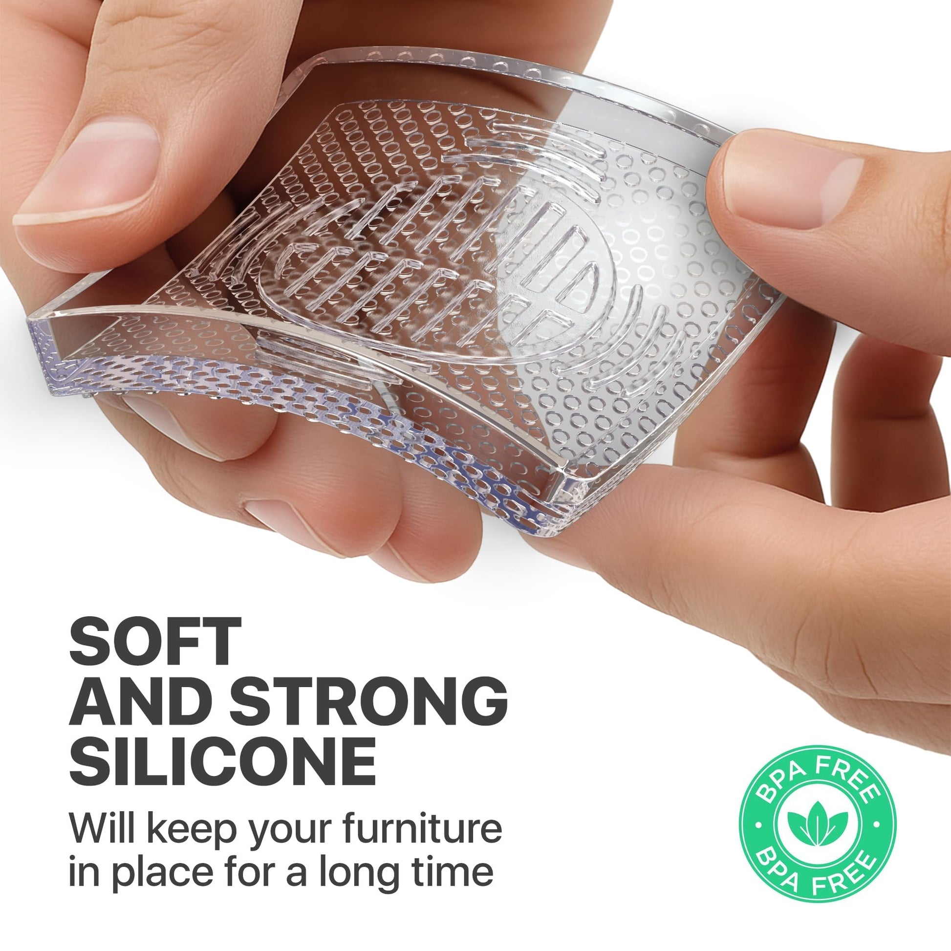 Details: Keep your furniture in place and your floors flawless with X-Protector Rubber Feet for Furniture. Designed to prevent movement and protect against scratches, these transparent couch stoppers to prevent sliding are perfect for hardwood, tile, vinyl, or laminate surfaces. Made from high-quality, non-toxic clear material, non skid furniture grippers blend seamlessly into your home without leaving any marks or residue - making floor protectors for furniture ideal for visible areas where appearance matters. The smart grip design features a textured inner surface that holds furniture legs of any shape securely, while the non-slip bottom ensures your furniture stays put. These versatile rubber furniture pads non slip work well under sofas, beds, tables, and more, fitting both round and square legs with a universal 3" x 3" size. Whether you're looking to protect your flooring or prevent your furniture from shifting, X-Protector has you covered. Backed by our quality guarantee, you can stay confident and enjoy peace of mind knowing your floors are safe and your furniture is secure with X-Protector Floor Protectors For Hardwood Floors.