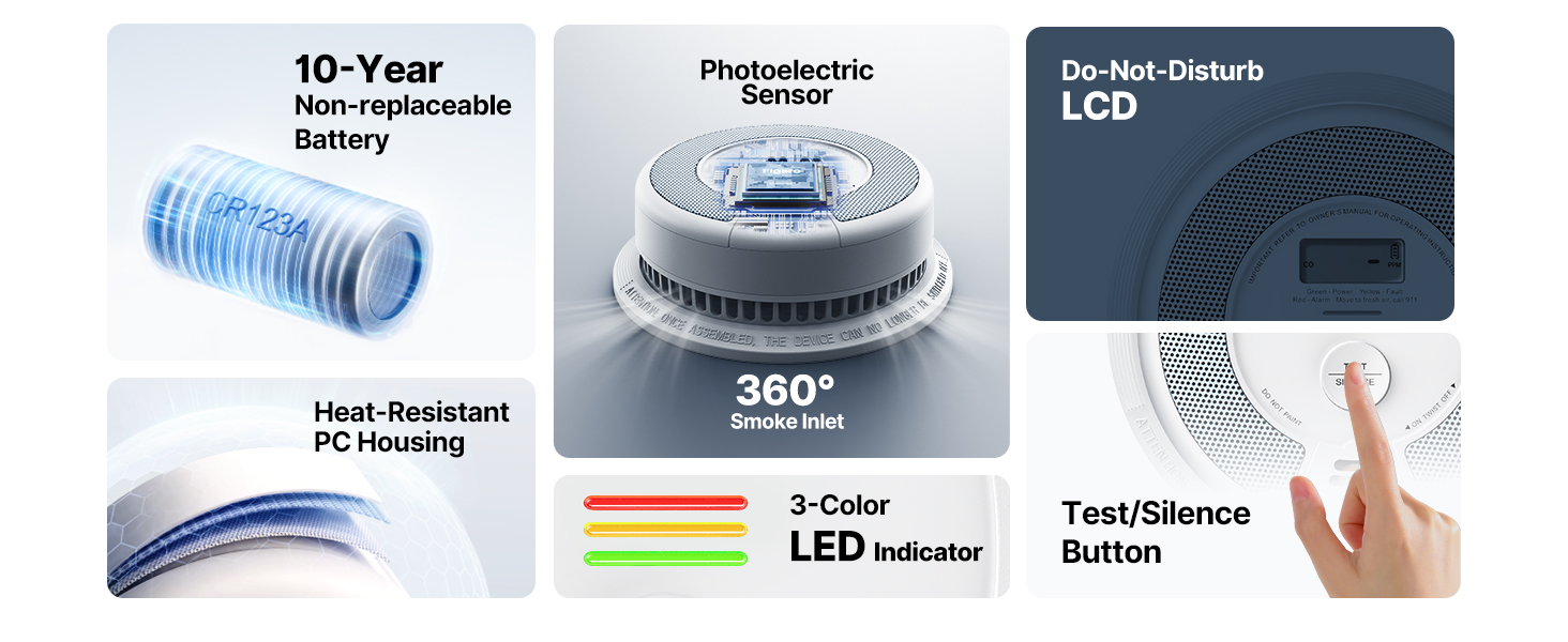 - 10-Year Sealed Lithium Battery: The long-life battery and reliable performance offer peace of mind without the hassle of battery changes, knowing your home is protected for a decade