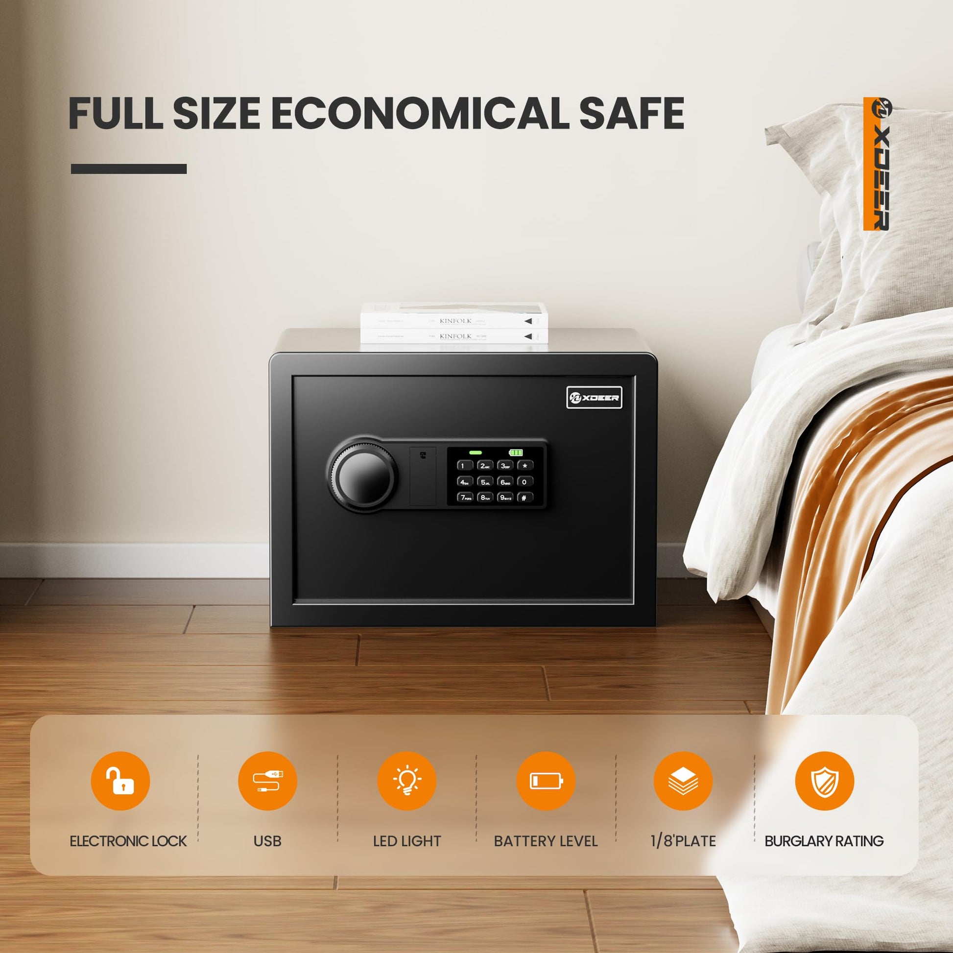 XDeer Biometric Safe Box, Quick-Access Security Safe Box with Upgraded Fingerprint, Steel Handgun Safe Lock Box for Kid/Home/Office (0.78 Cu.Ft【NO FPR】)
