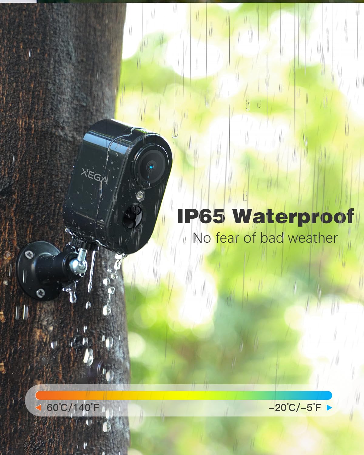 - CHARGE ONCE, WORK FOR MONTHS: With Built in aprox.6000mAh High-Capacity & Rechargeable battery, this portable camera indoor/outdoor can work anywhere without electric cable. It without solar panel. Assuming it is fully charged and record 60 times a day for 10 seconds each time, the battery life about 30 days. This no wi-fi home security camera is IP66 water resistant design, You Never need to worry about the rain or snow may damage the camera or cause a battery short circuit.