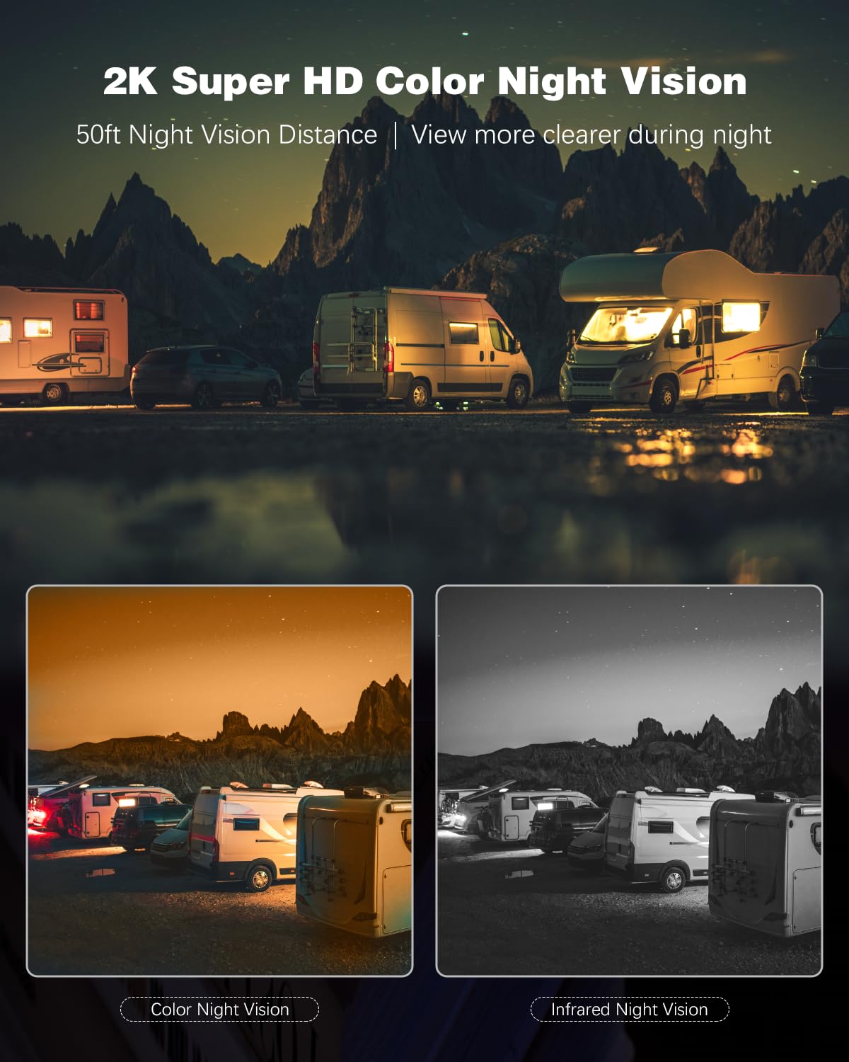- 3MP HD RESOLUTION & COLOR/IR NIGHT VISION: The camera can support 3MP HD(2304*1296P), much clearer than 1080P, ensuring that you can see ultra-clear details during the day and night. The indoor/outdoor security cameras support color/infrared night vision. Whether in the presence of faint light or complete darkness, It can ensure that objects within 50 feets can be clearly monitored, giving you the best night vision experience.
