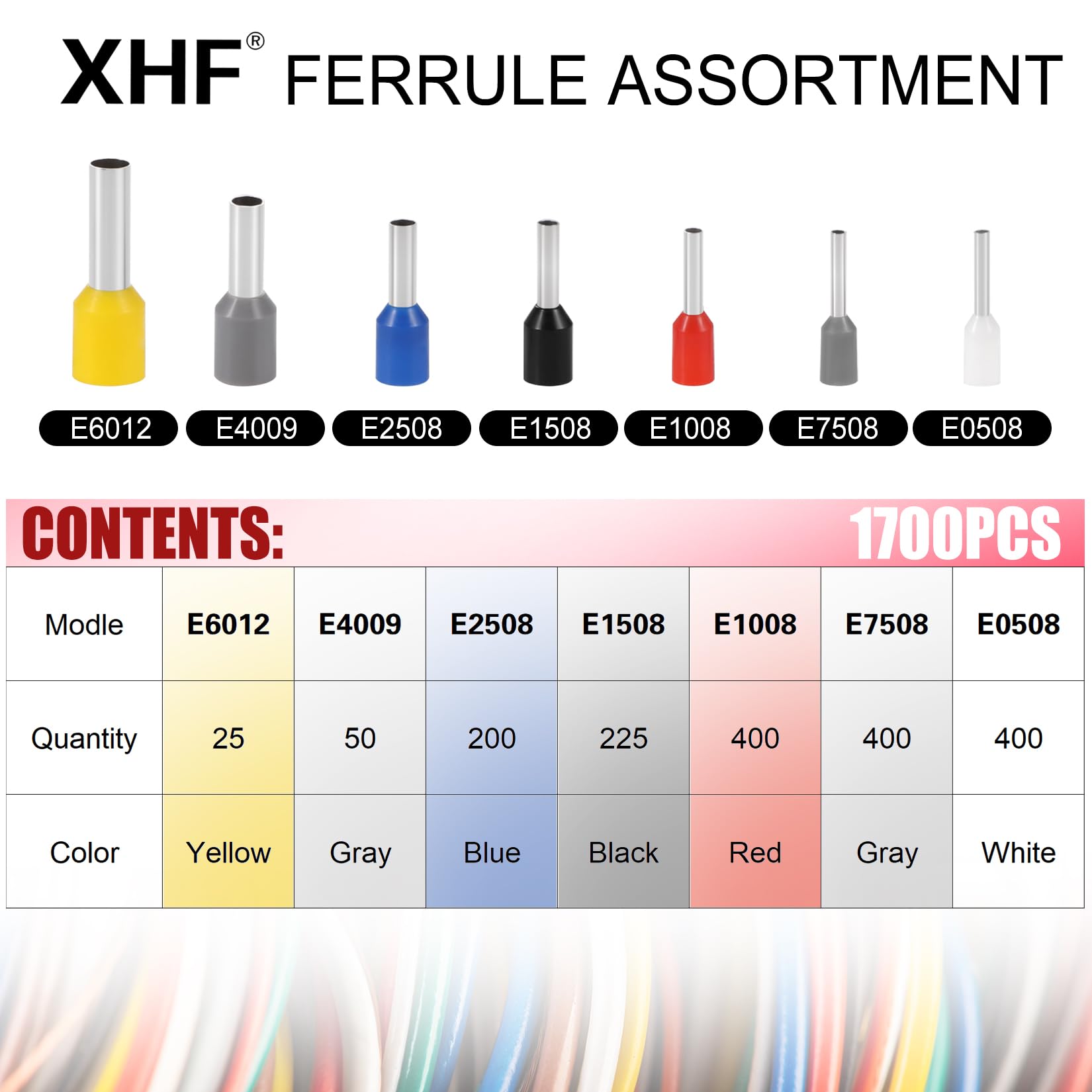 XHF 1700 PCS Ferrule Crimping Tool Kit with Hexagonal Ferrule Crimper Insulated Wire End Ferrules Terminals