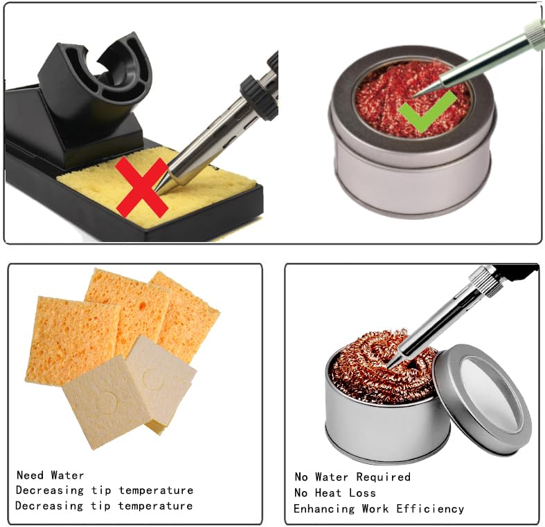 - 【Convenient】Equipped with replaceable soft coiled brass wool for tip cleaning, this soldering iron holder offers a convenient solution for cleaning your soldering iron tip during use, effectively removing excess solder and maintaining optimal performance.
