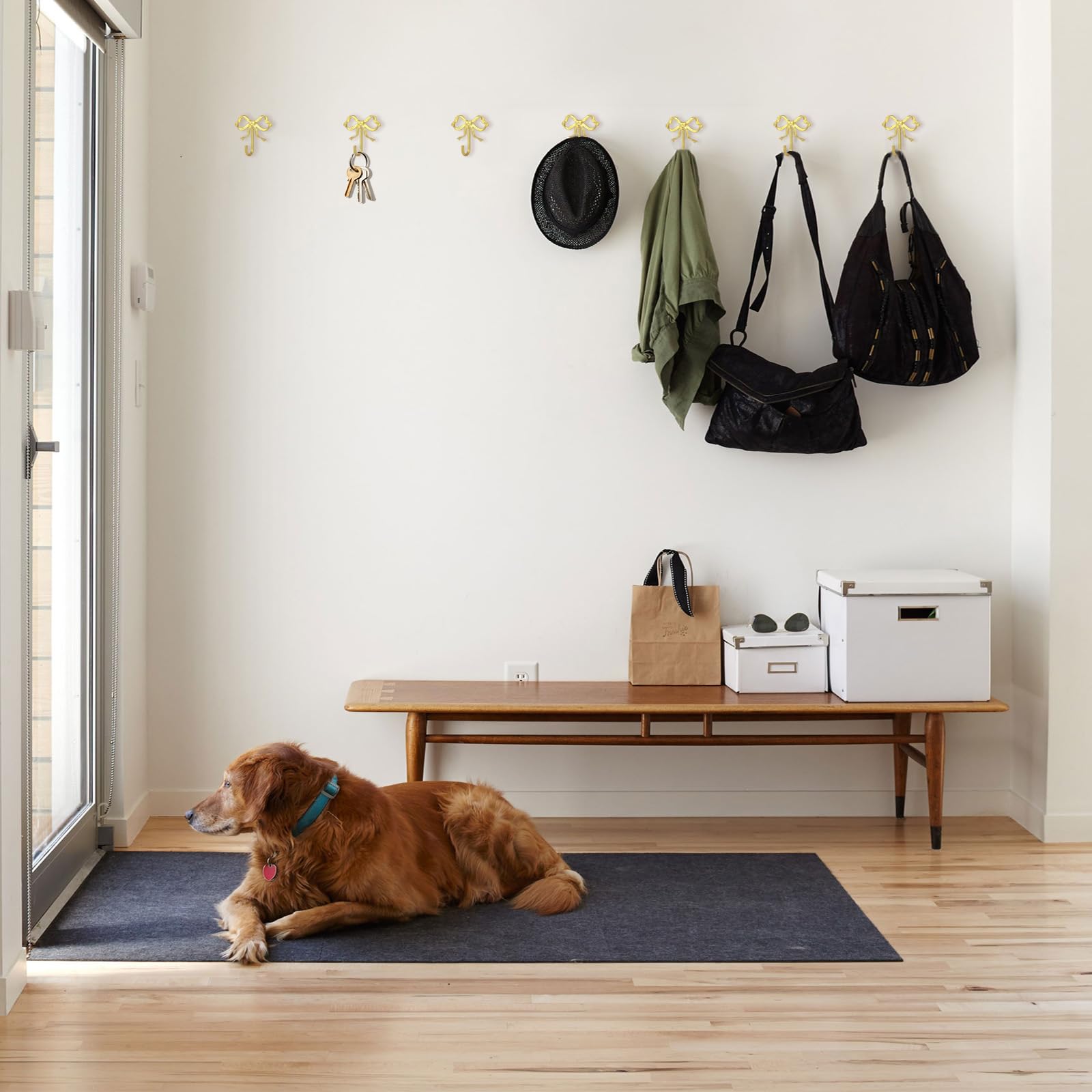 - PERFECT SIZE: The gold bow wall hooks measure 10.5cm/4.13inch high by 9.1cm/3.58inch hook spacing 3.7cm/1.45inch.Each hook comes with two screws of 20mm/0.8inch and 30mm/1.2inch respectively and comes with plastic wall anchors. Definitely a good helper for room organization and decoration.