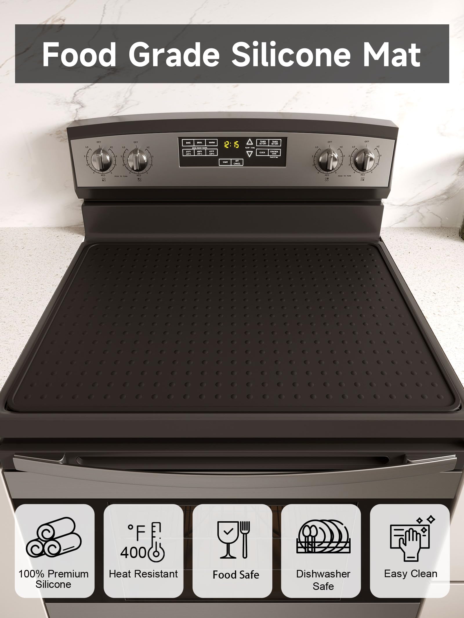 XiFEO Silicone Stove Top Cover for Electric Stove, Glass Stove Top Cover Protector, Flat Top Range Cover – Double as Dish Drying Mat, Coffee Bar Mat, Kitchen Stove Accessories, 28 x 20 in, Black