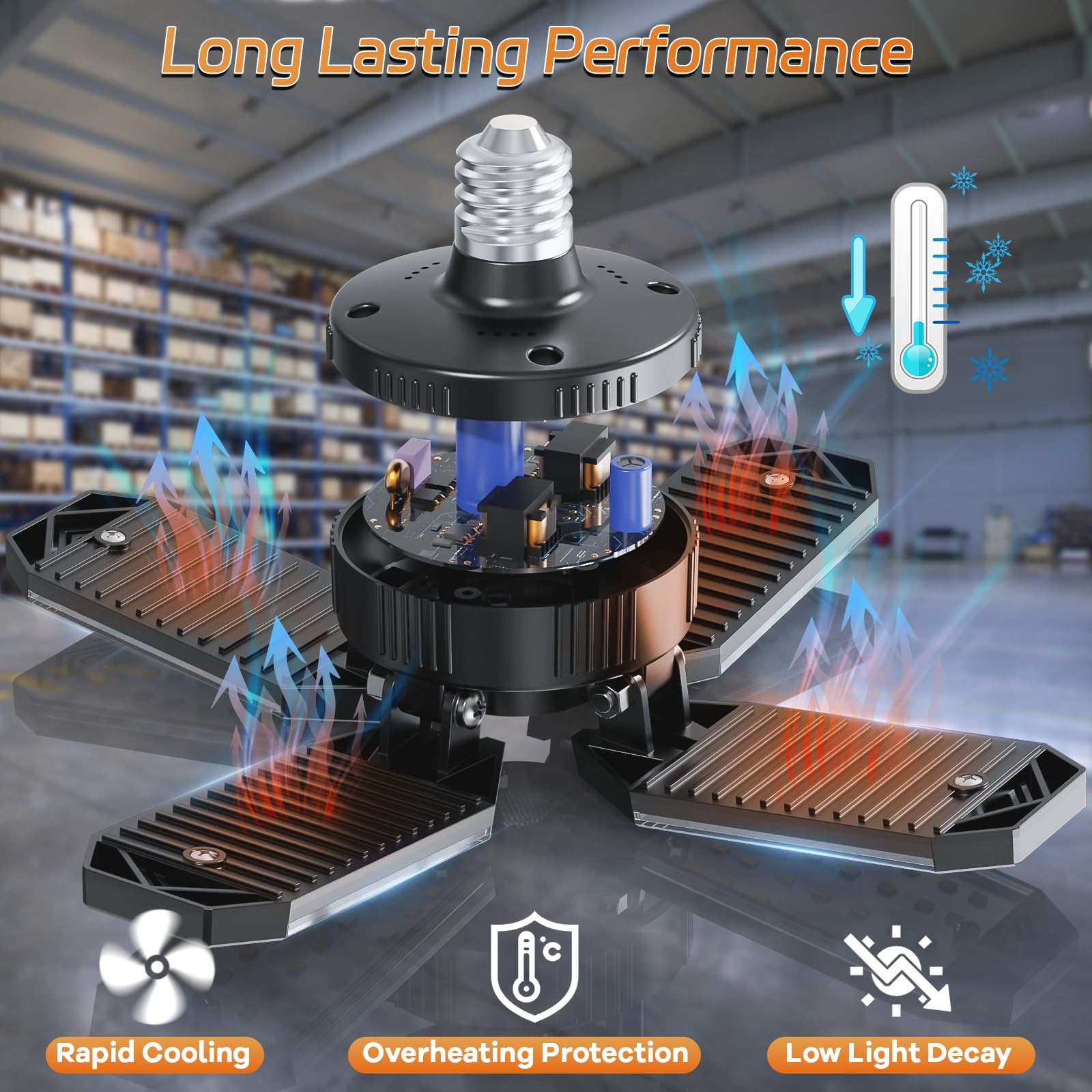 - Effortless Installation Garage Lights LED: If your space is equipped with regular light bulb sockets, these garage led lights are an huge upgrade. With a simple screw-in design and no need for additional tools, installation is quick and easy. Busy homeowners, car enthusiasts, and DIYers will all appreciate this hassle-free setup