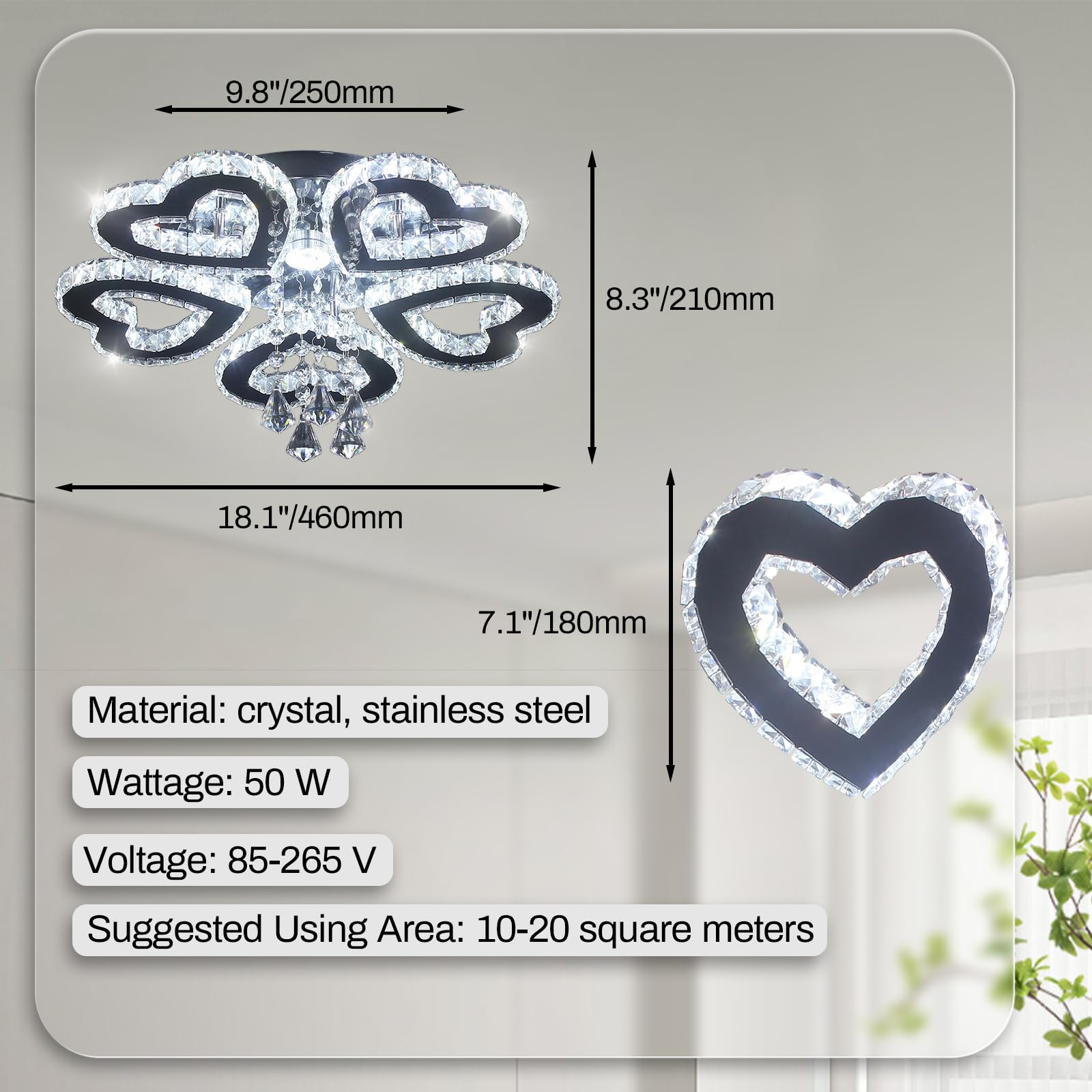- 【Crystal Chandelier】Cool White (6000-6500 K), not dimmable,built in LED chips (included),Wattage: 50 W, Voltage: 85-265 V