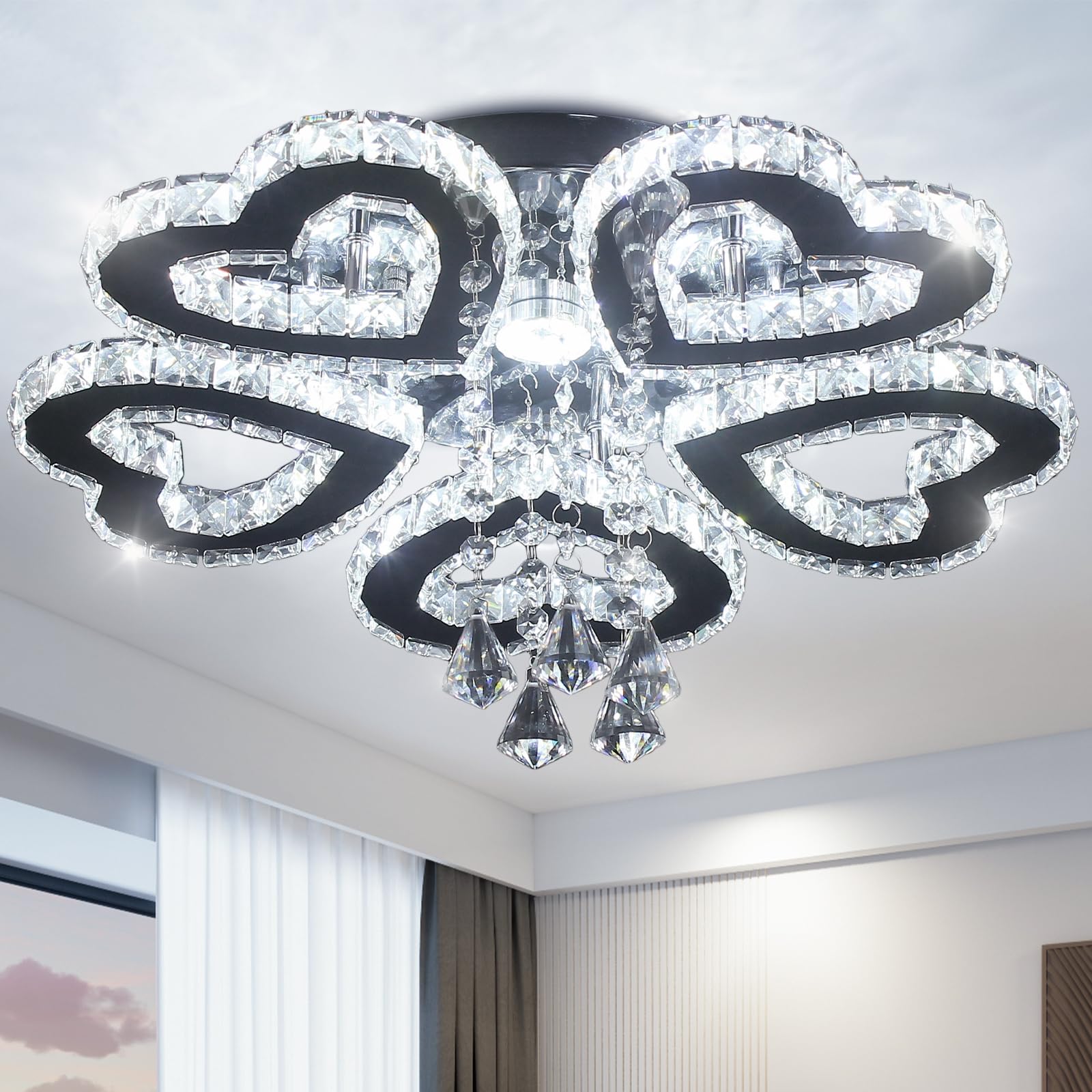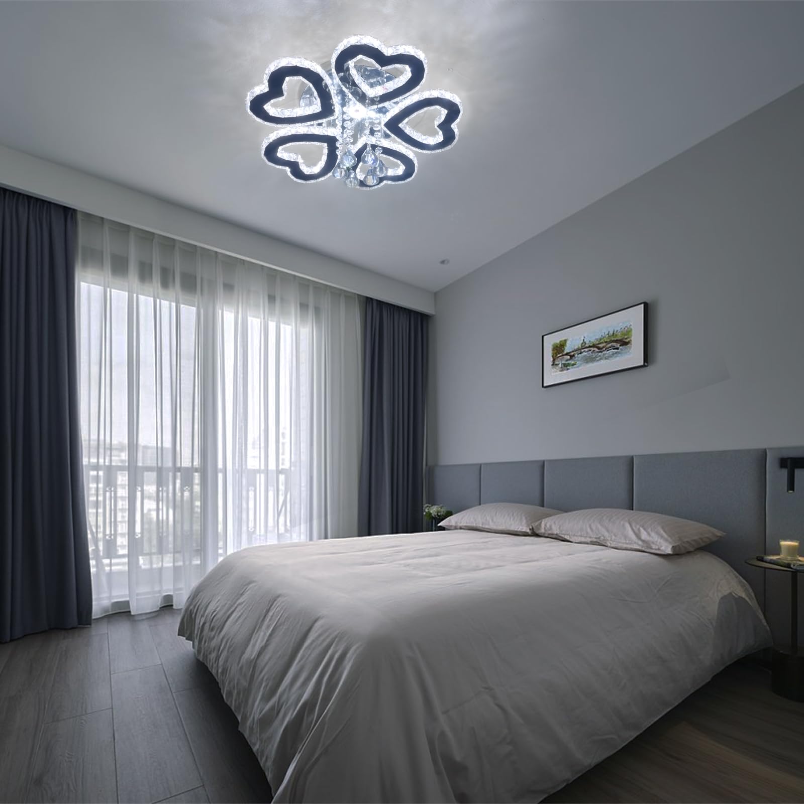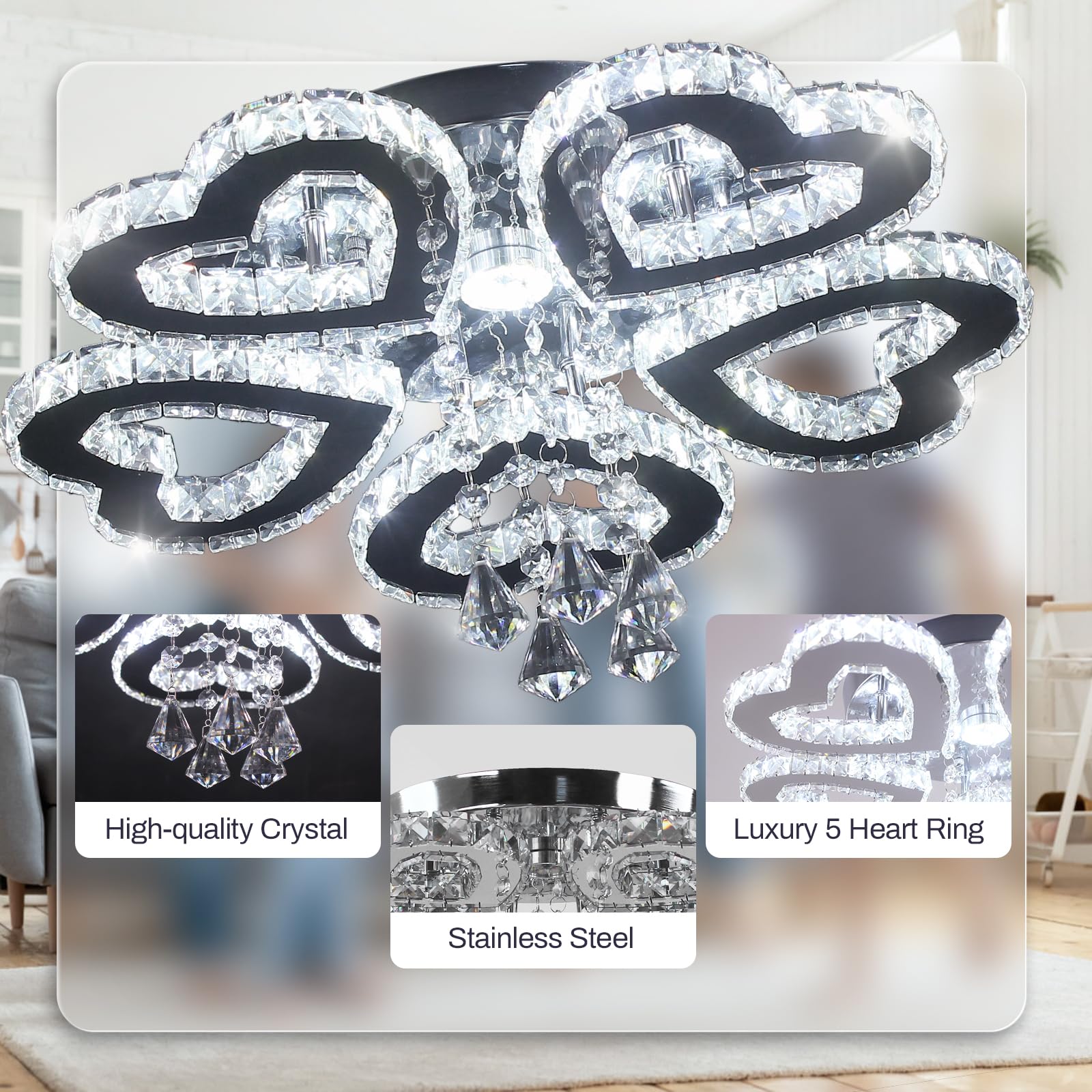 - 【Crystal Heart Ceiling Light】Luxury 5 heart ring LED chandelier ceiling light fixture, crystal lamp, decorative lighting, it can bring a romantic and classy lighting atmosphere to your beautiful home.