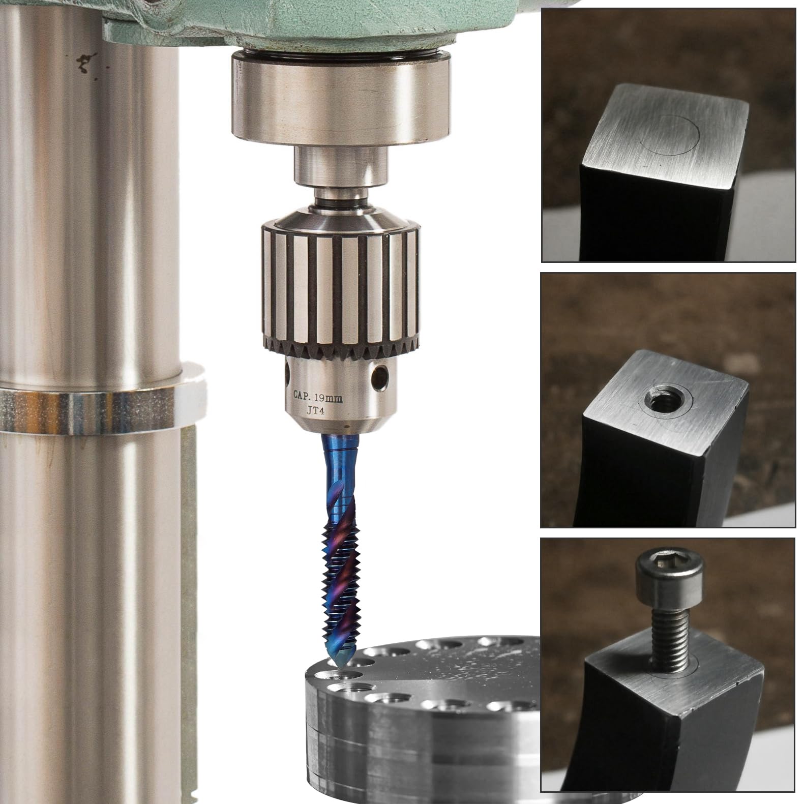 - Versatile Application: Suitable for use with tapping machines, drill presses, or hand drills for precision threading in a variety of materials, such as soft metal, wood, plastic and other machineable materials.