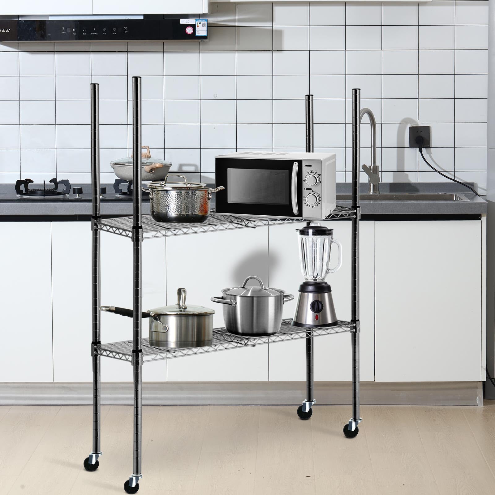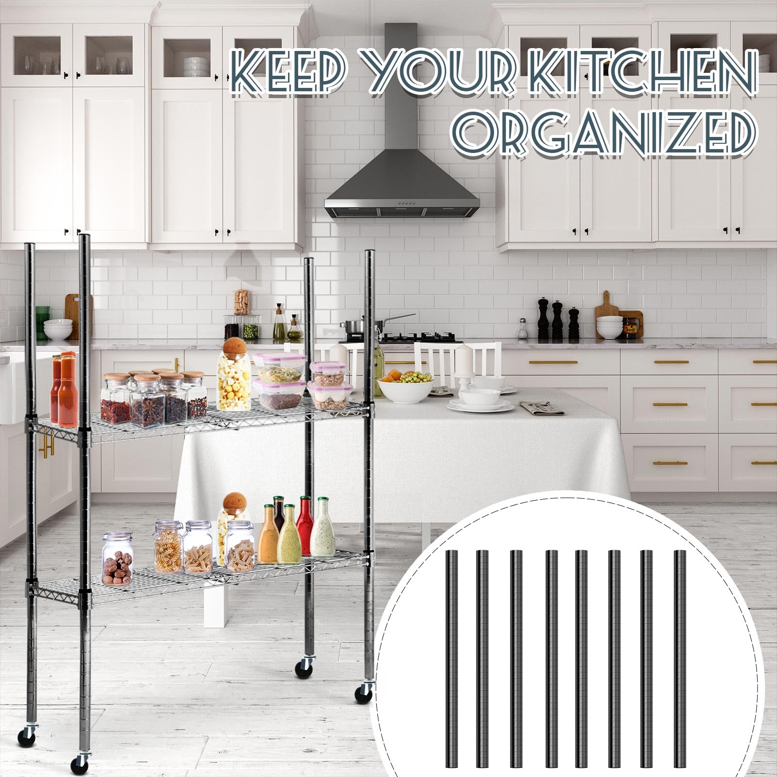 - Versatile Use across Various Settings: whether you're organizing a home, office, kitchen pantry, restaurant, store, hotel, garage, or warehouse, our chrome wire shelving poles are the suitable choice; The silver and black colors make it visually appealing, and the size caters to different storage needs and spaces