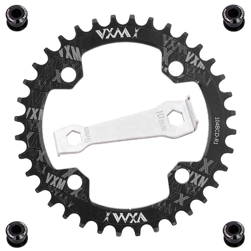 - ①【Aerospace-Grade Construction】✓ 7075-T6 Aluminum Alloy - 572MPa tensile strength (30% stronger than 6061), ✓ 5-Axis CNC Machined - ±0.01mm tooth tolerance (ISO 13041 certified), ✓ Military-Grade Hard Anodization - HV800 surface hardness (3x wear resistance), ✓ Compatibility: Compatible with 104BCD Single Bike Chainring Shimano/SRAM 8-11 Speed MTB/Road Bikes