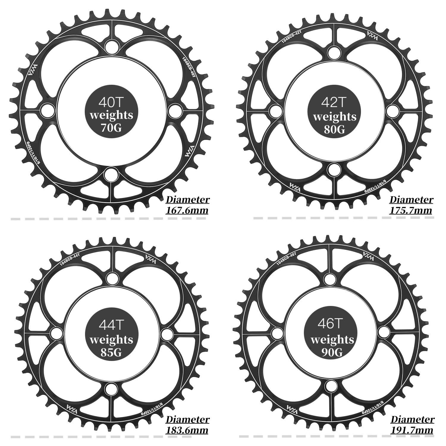 - ②【 Advanced Anti-Drop Chain Retention System】✓ Alternating Narrow-Wide Tooth Profile (7.3mm wide / 6.8mm narrow teeth) perfectly matches 8-11 speed chain pitches.✓ Dynamic Chamfer Technology enables 45% faster chain engagement, tested to reduce chain drops by 92% on rough terrain.✓ Extended Tooth Tips enhance stability, ideal for high-impact MTB rides and aggressive road cycling.