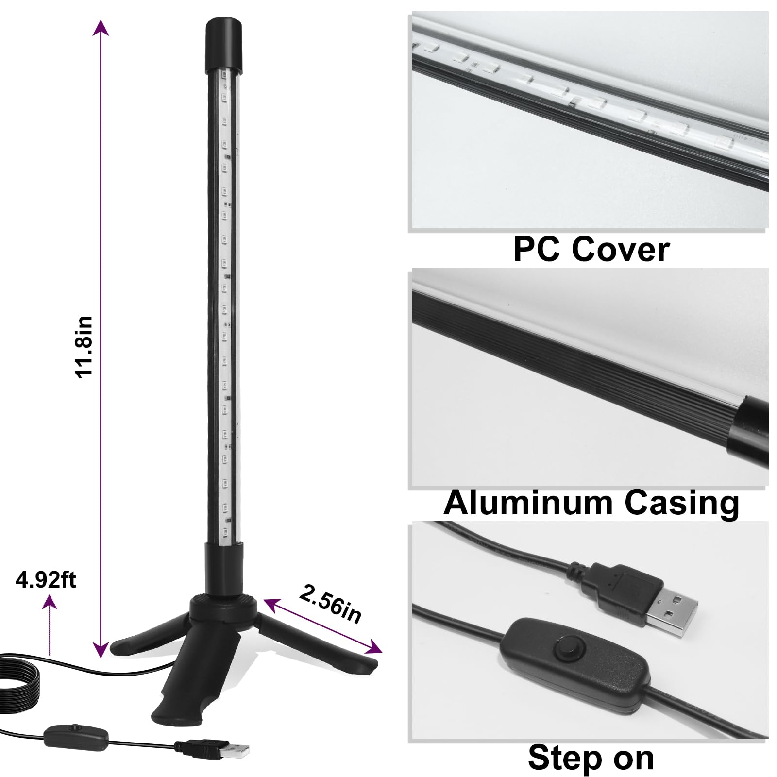 - 【Upgraded Desktop LED Black Light】Standing at 1FT tall, this sleek LED black light offers side illumination with its light tube, providing broad coverage. Perfect for creating a captivating atmosphere, it illuminates action figures and tapestries with ease. Elevate your desktop experience with its mesmerizing glow.