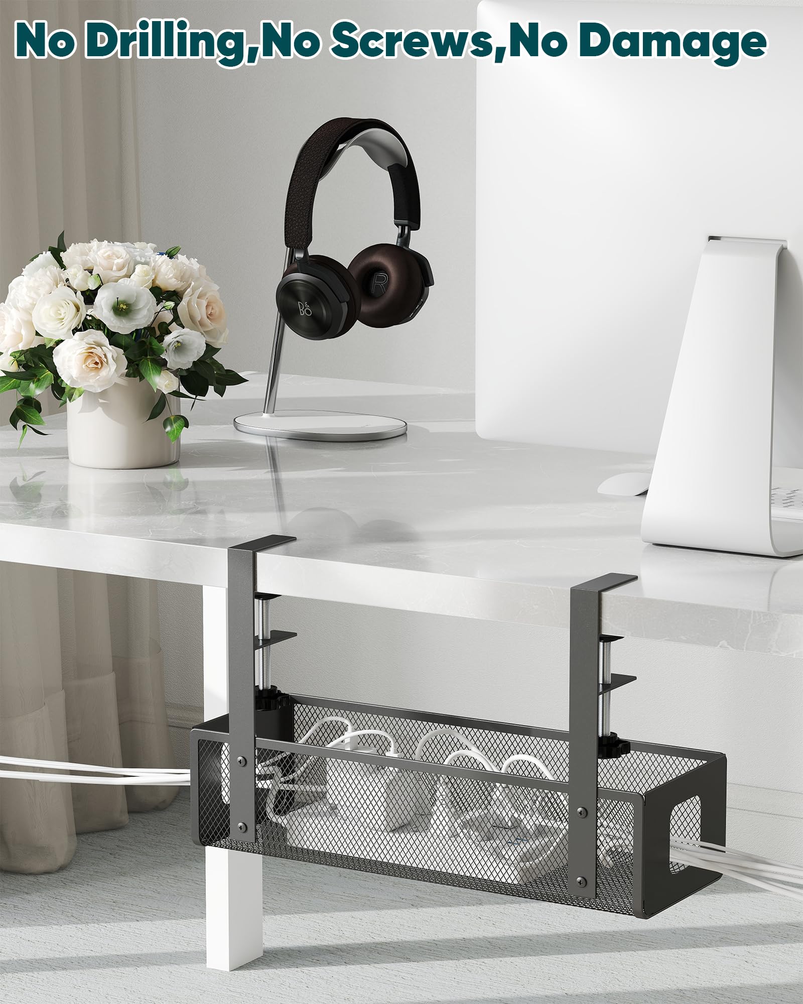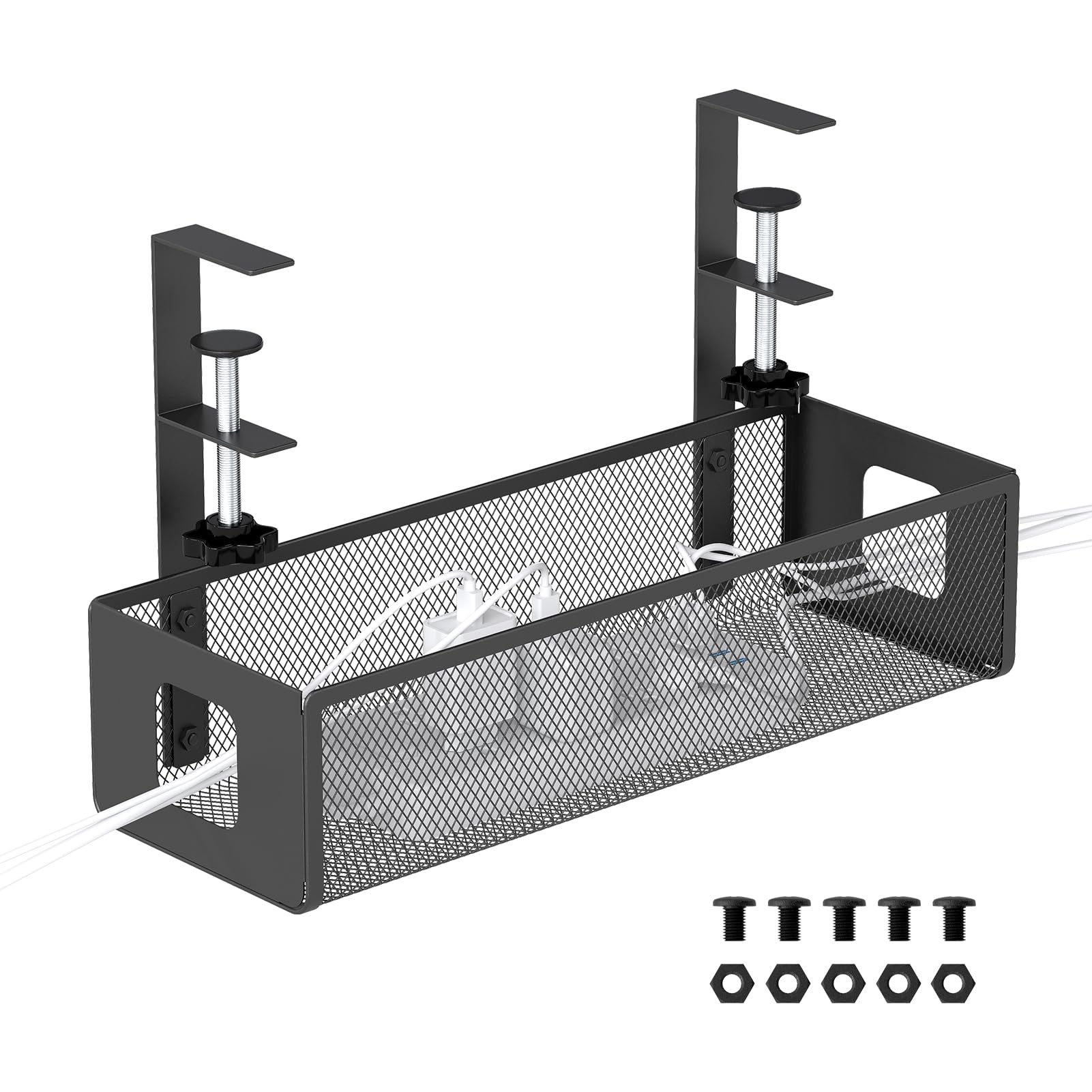Yecaye Cable Management Under Desk Tray – No Drill Cord Management Under Desk with Dual-Direction F-Clamp, Mesh Design Wire Organizer Tray for Office and Home,Black